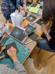 『「し」合わせ文字絵教室』の参加者が描いた作品を