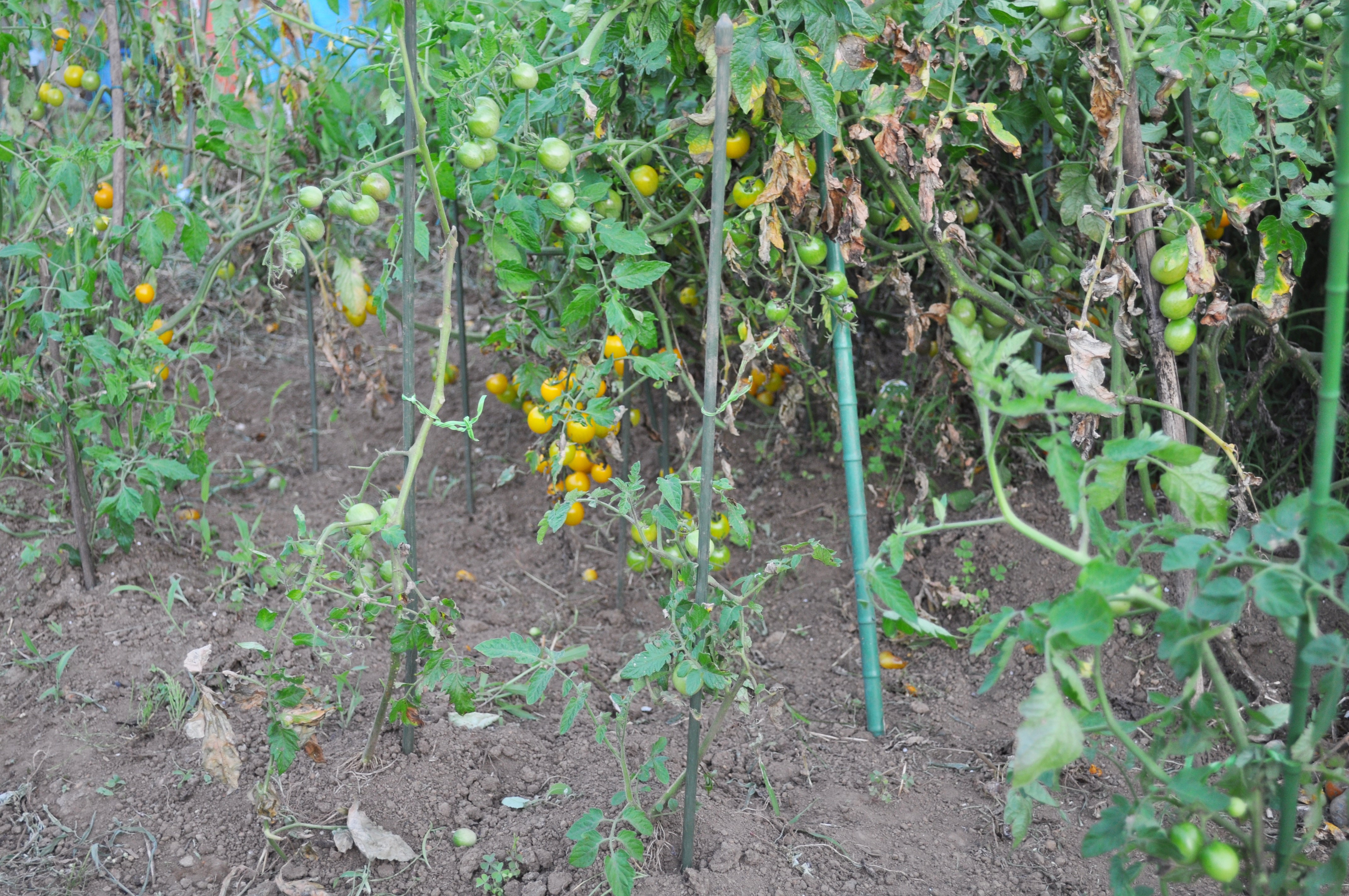 手前には、芽かきをした時に挿しておいたものが、一人前のトマト苗に成長。次世代のエースです。