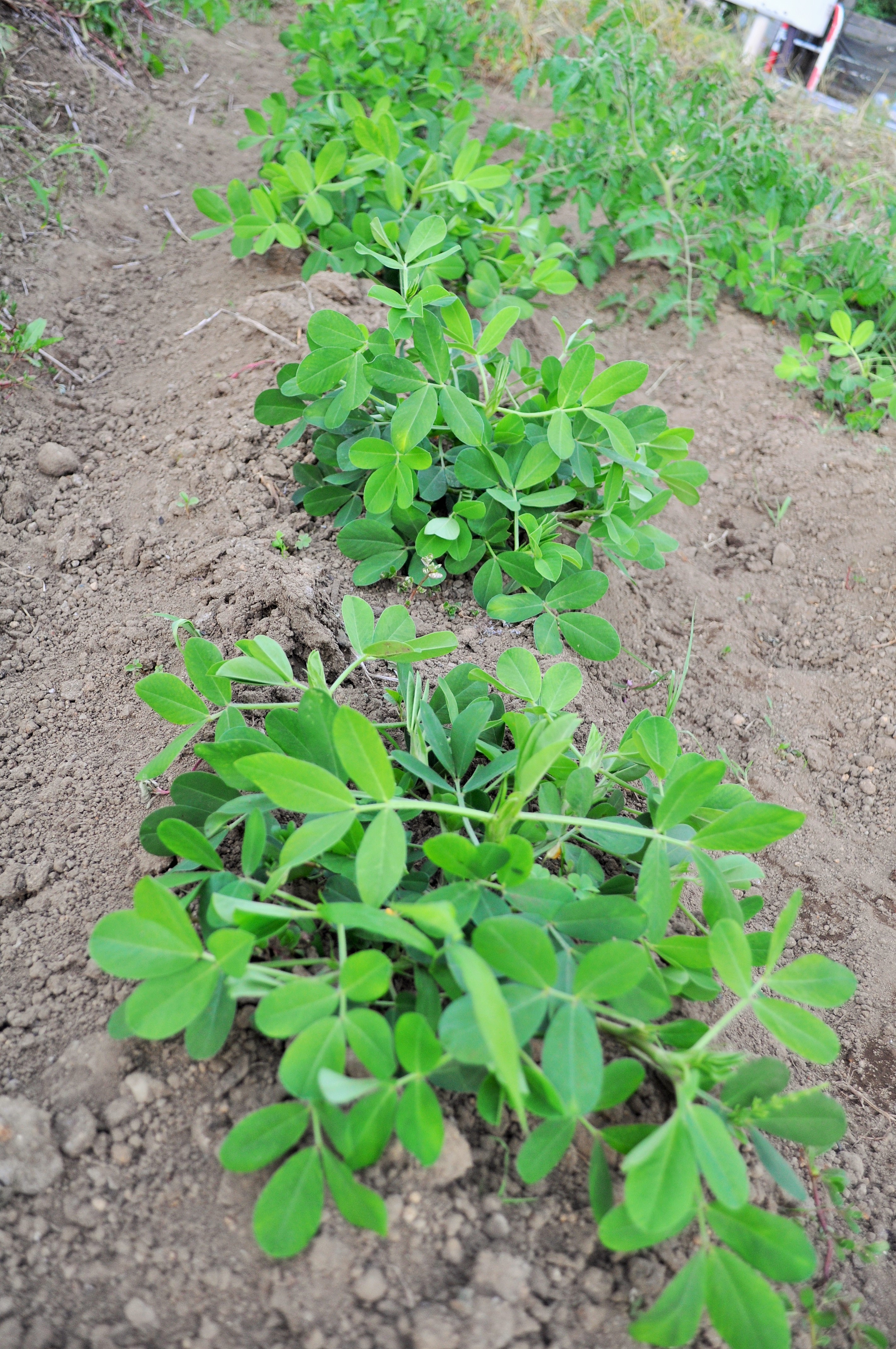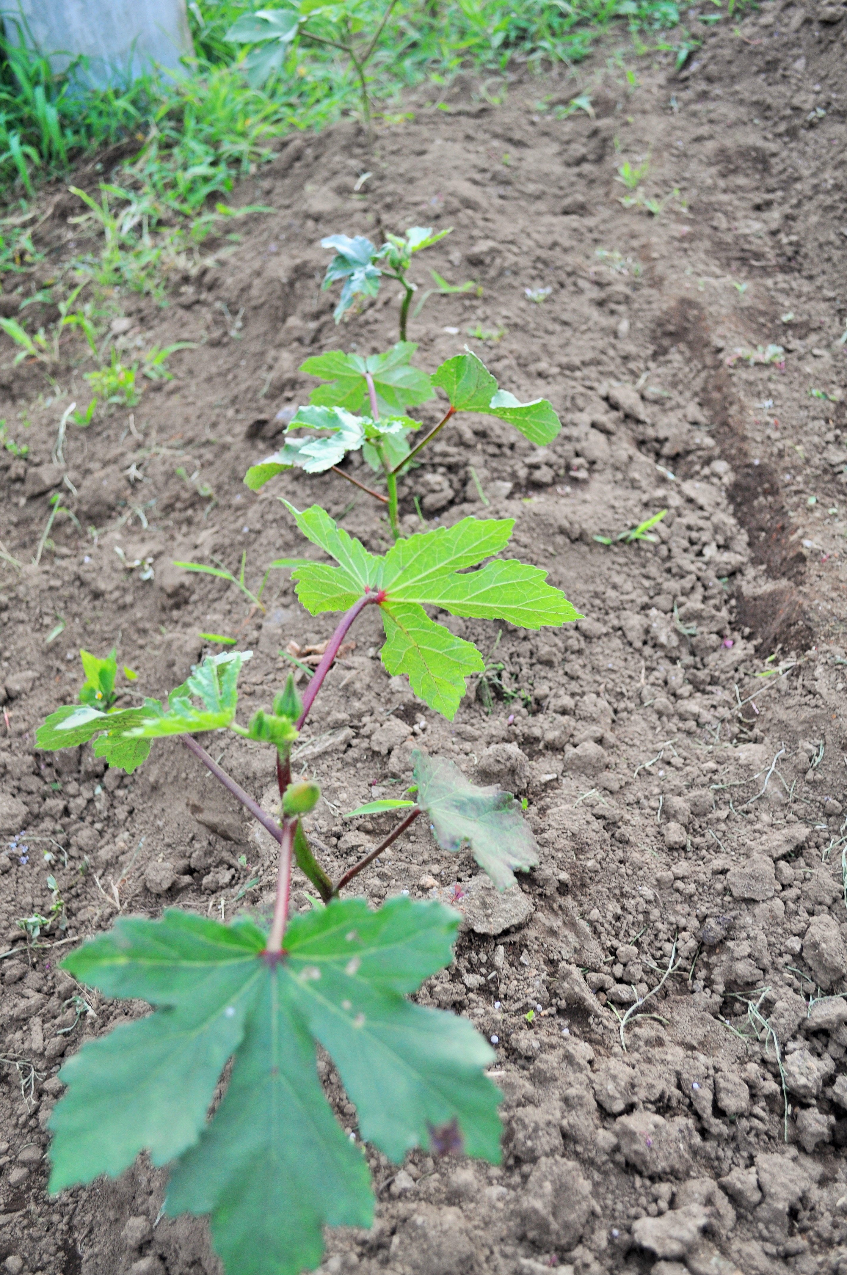 落花生、安納芋周辺をきれいにしてから、オクラの根元に少量の化成肥料を蒔いた後、土寄せ。