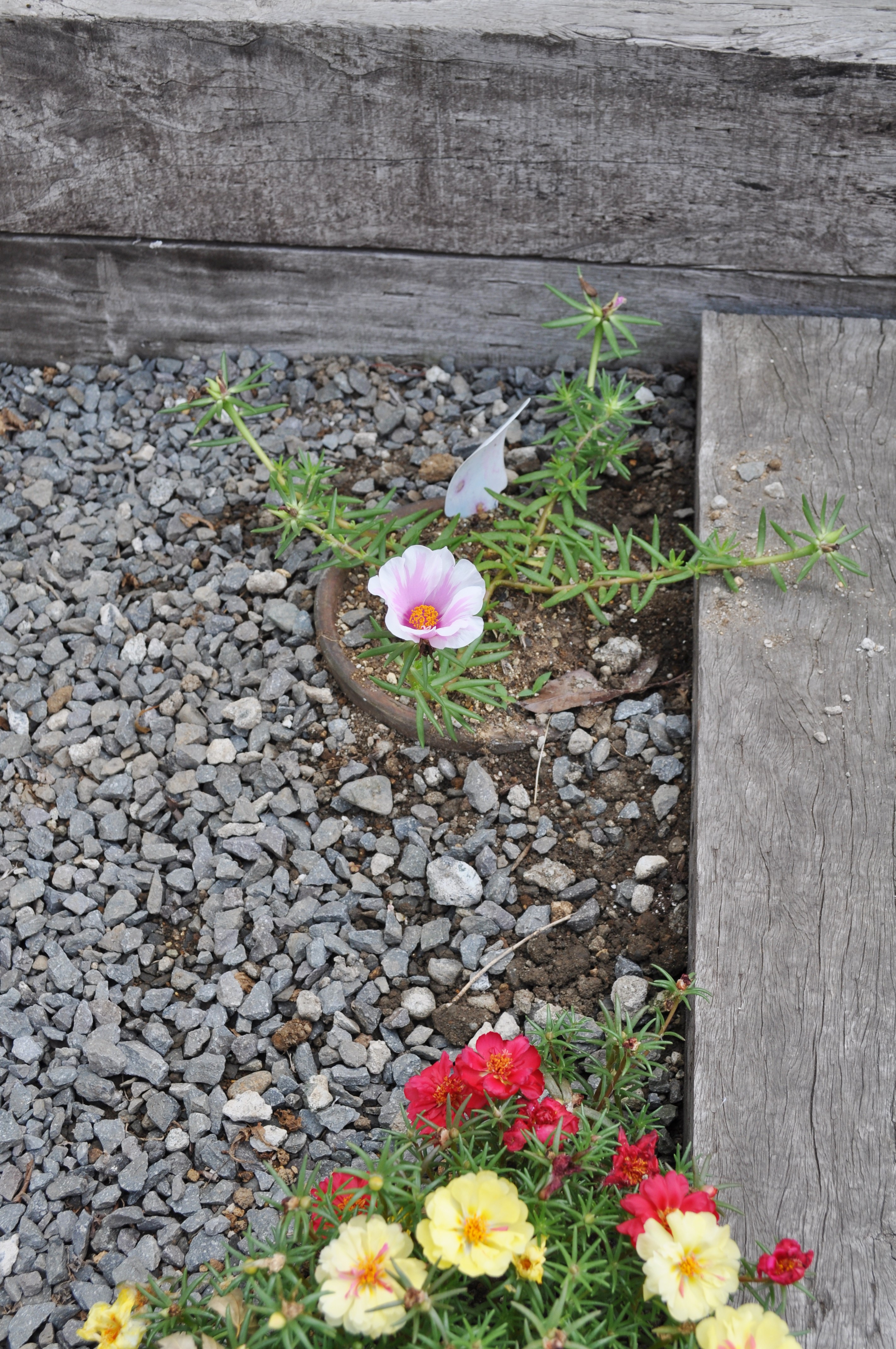アプローチの枕木のいちばんドアよりに
