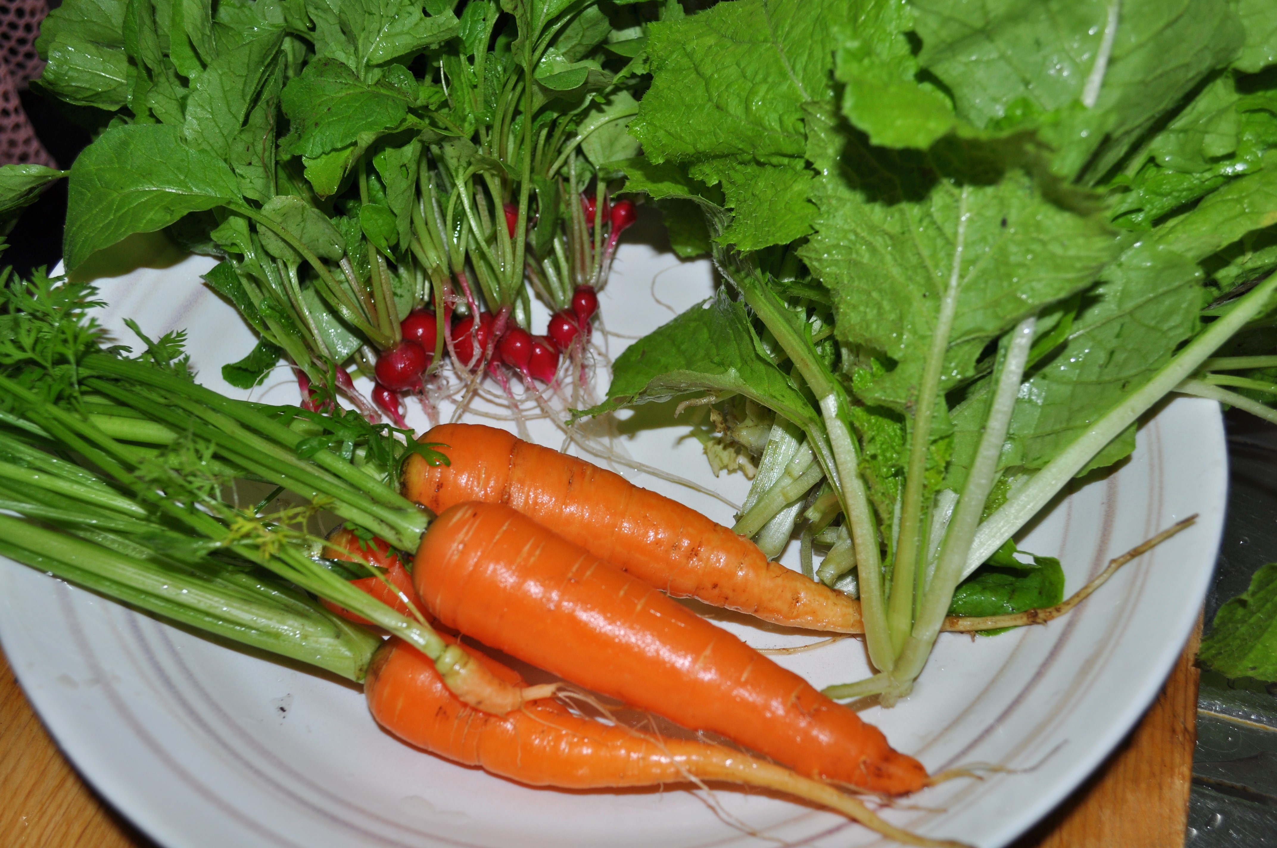 二十日大根とニンジンは、間引きしたものです。
