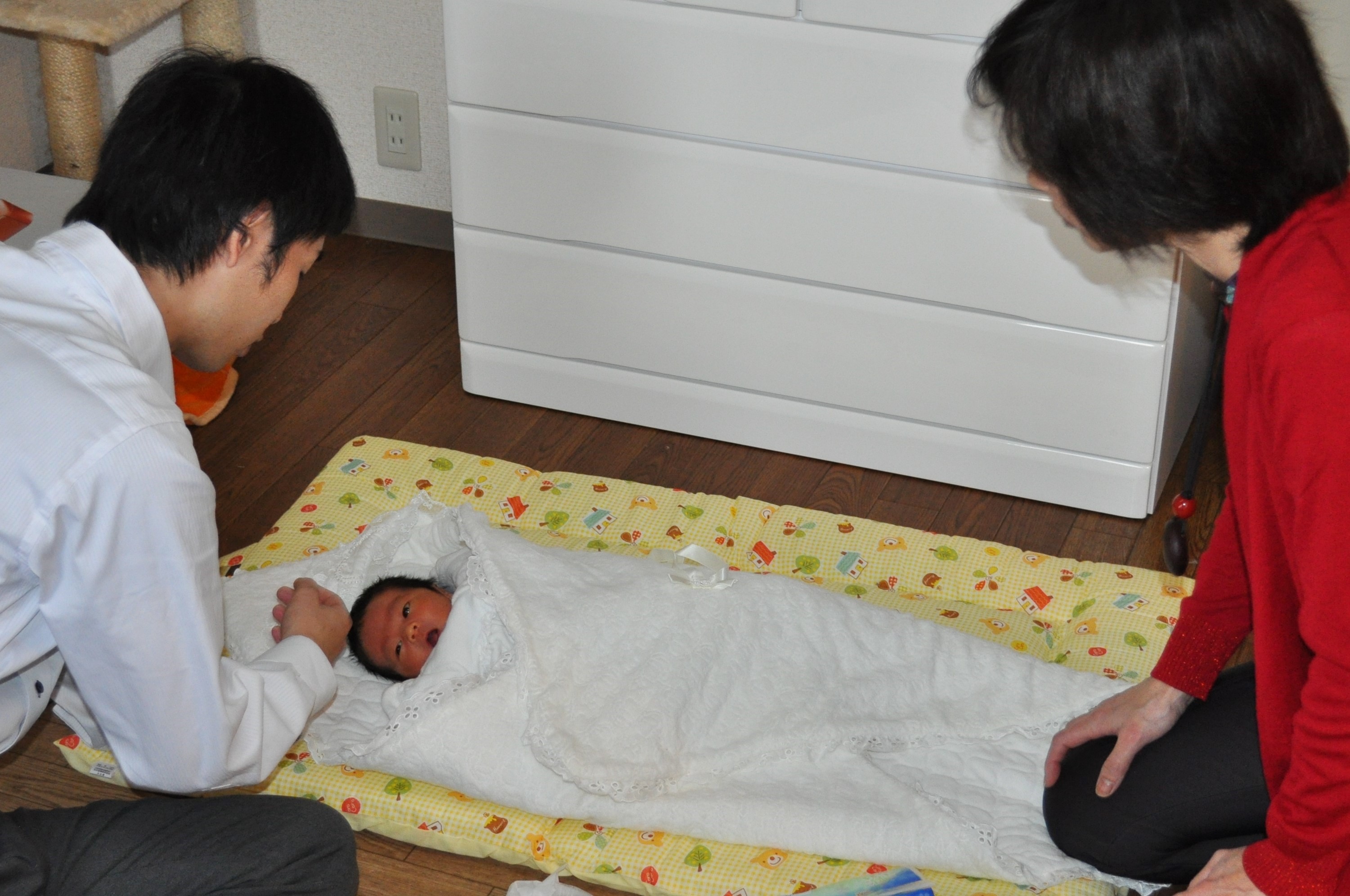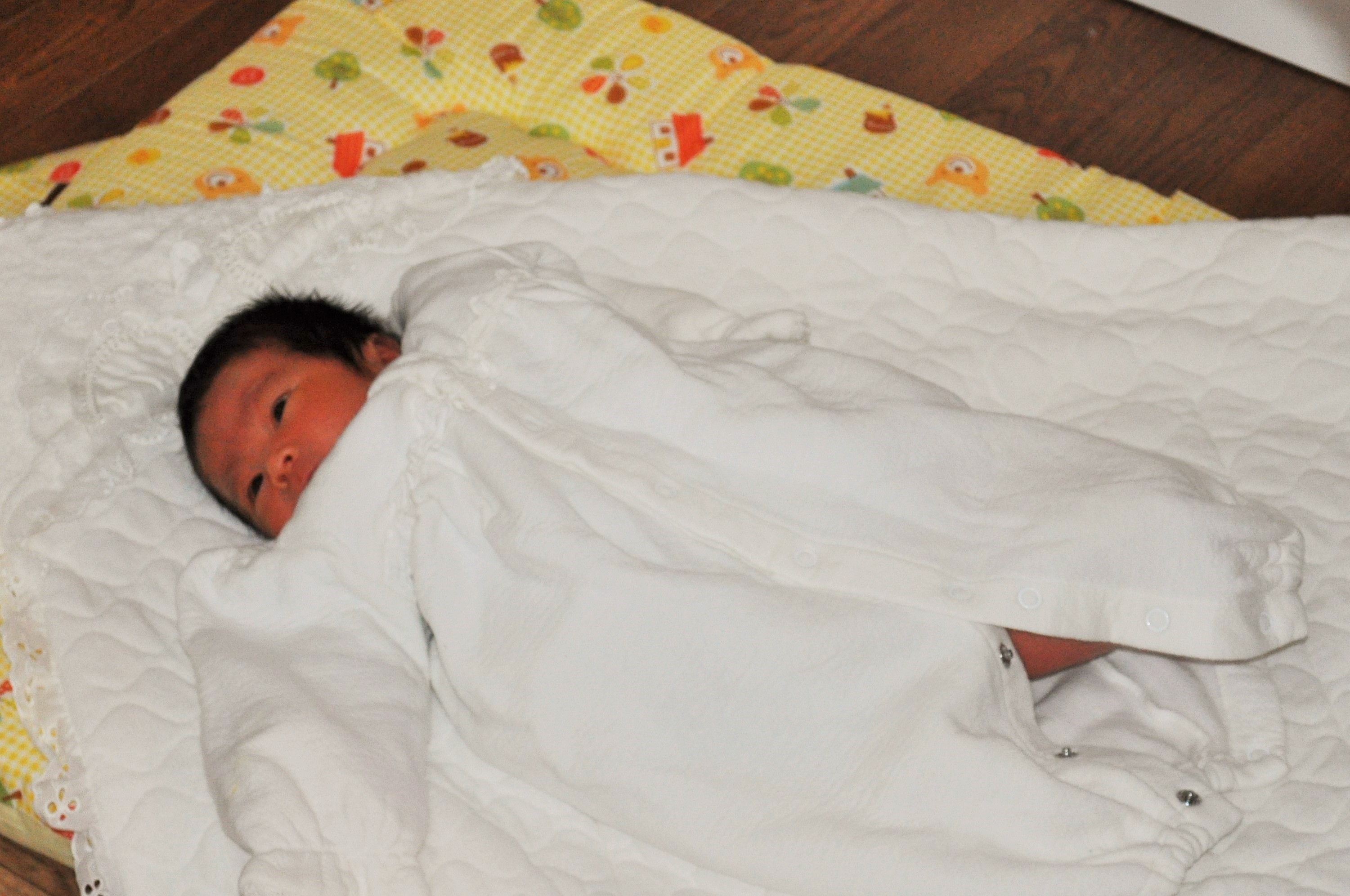生まれて5日目、本当に赤子。「おぎゃあ、おぎゃあ」と泣き声も教科書通り。