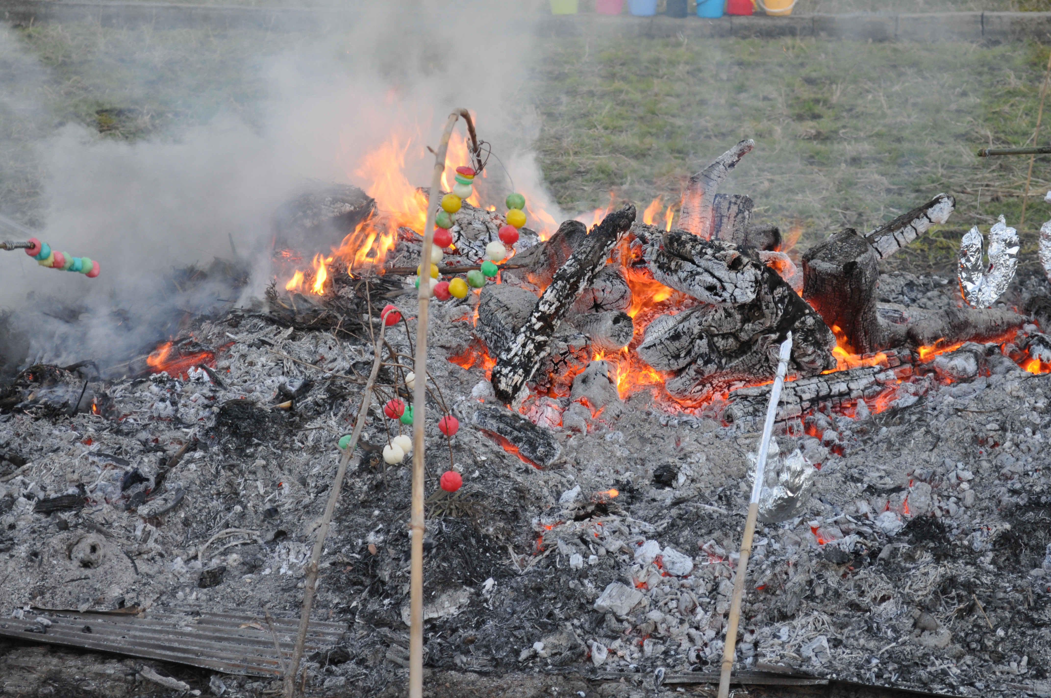 【この火にあたると若返るとか、焼いた団子を食べると病気をしない・虫歯にならない】【燃やした書初(かきぞめ)の紙が高く舞い上がると習字が上手になり勉強もできるようになる】などと言い伝えがいろいろあります。