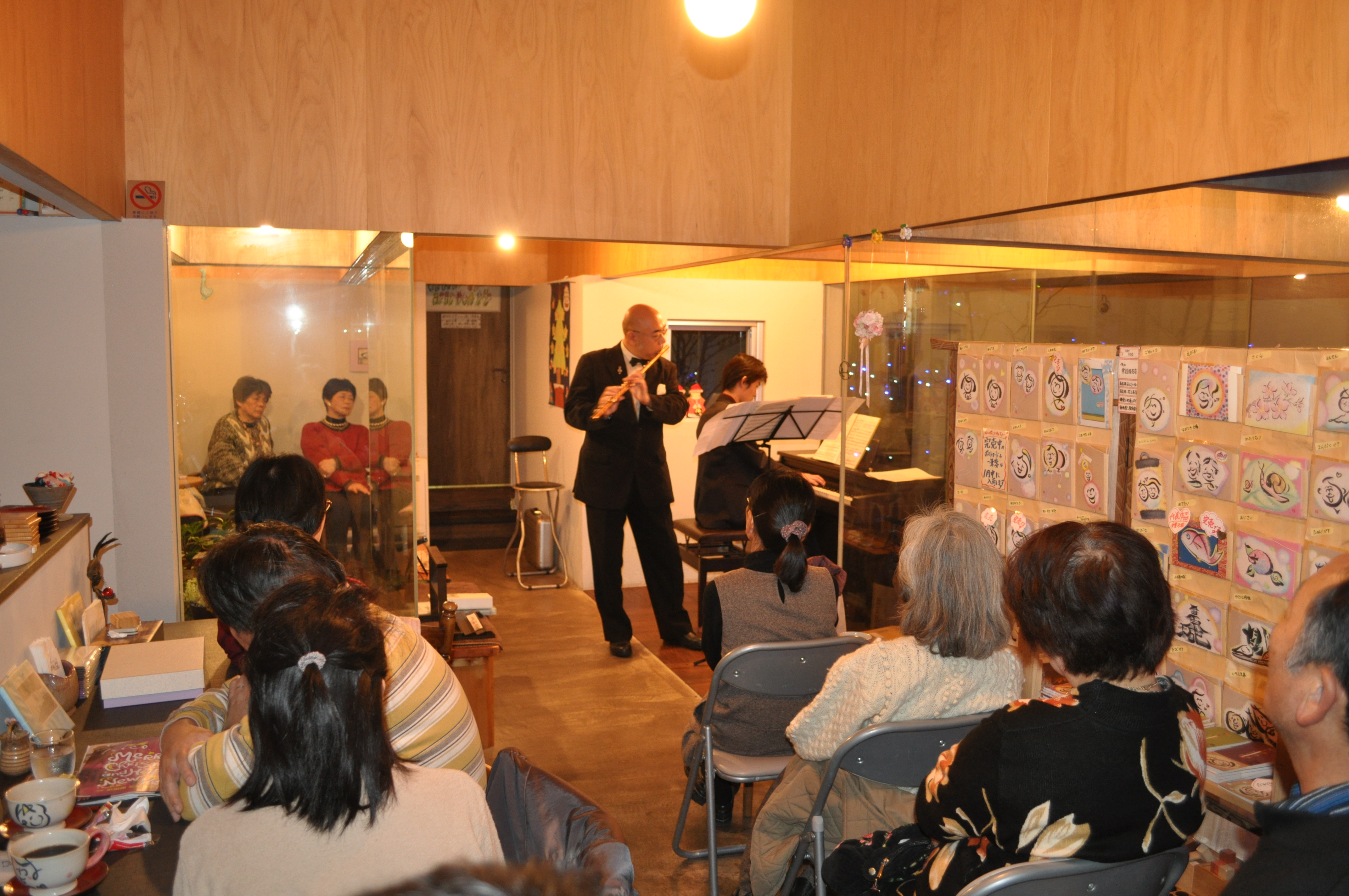 かくれ文字絵作家の個展会場でのギャラリーコンサート、
