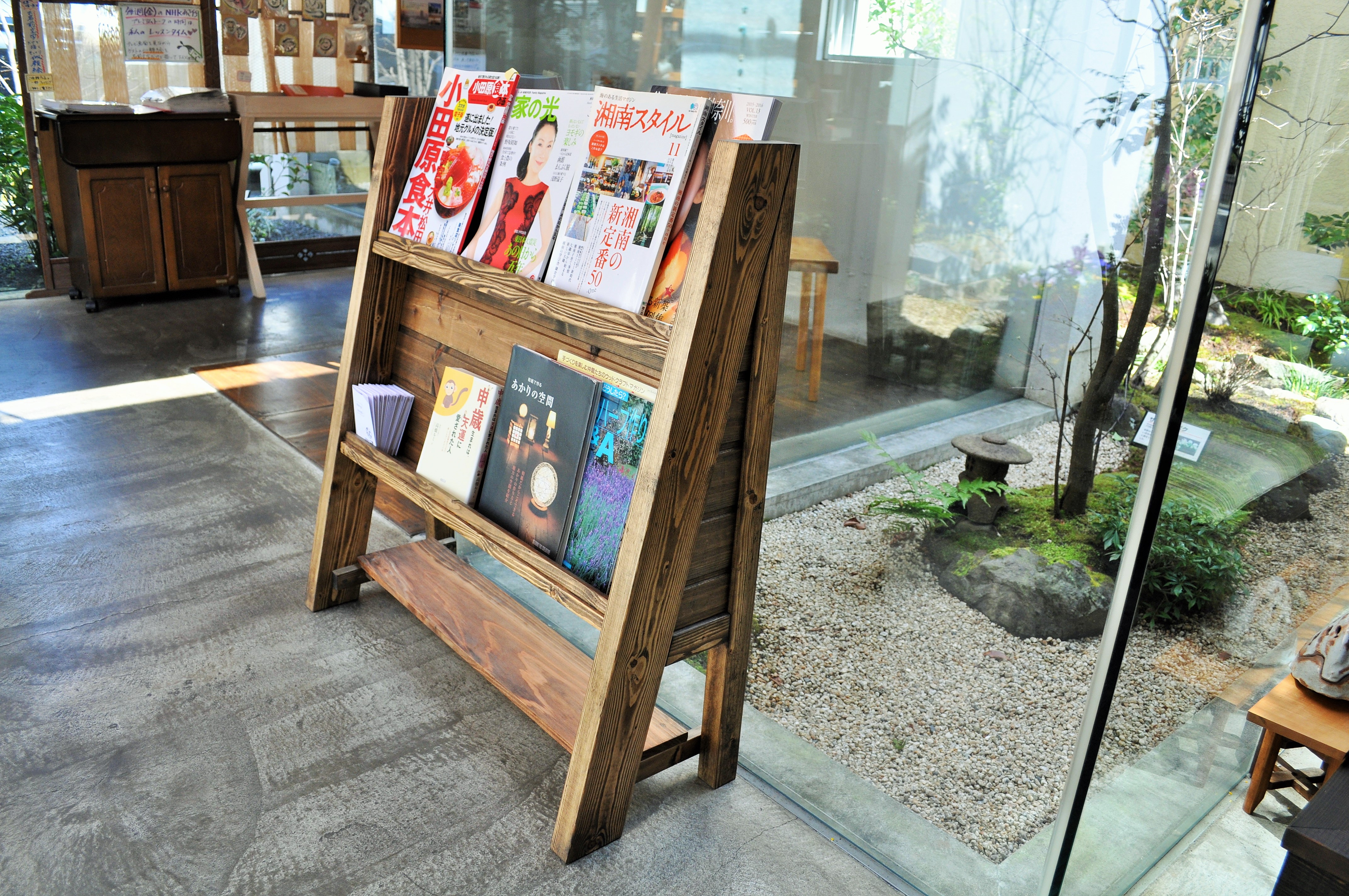 前からほしかった木製マガジンラック。