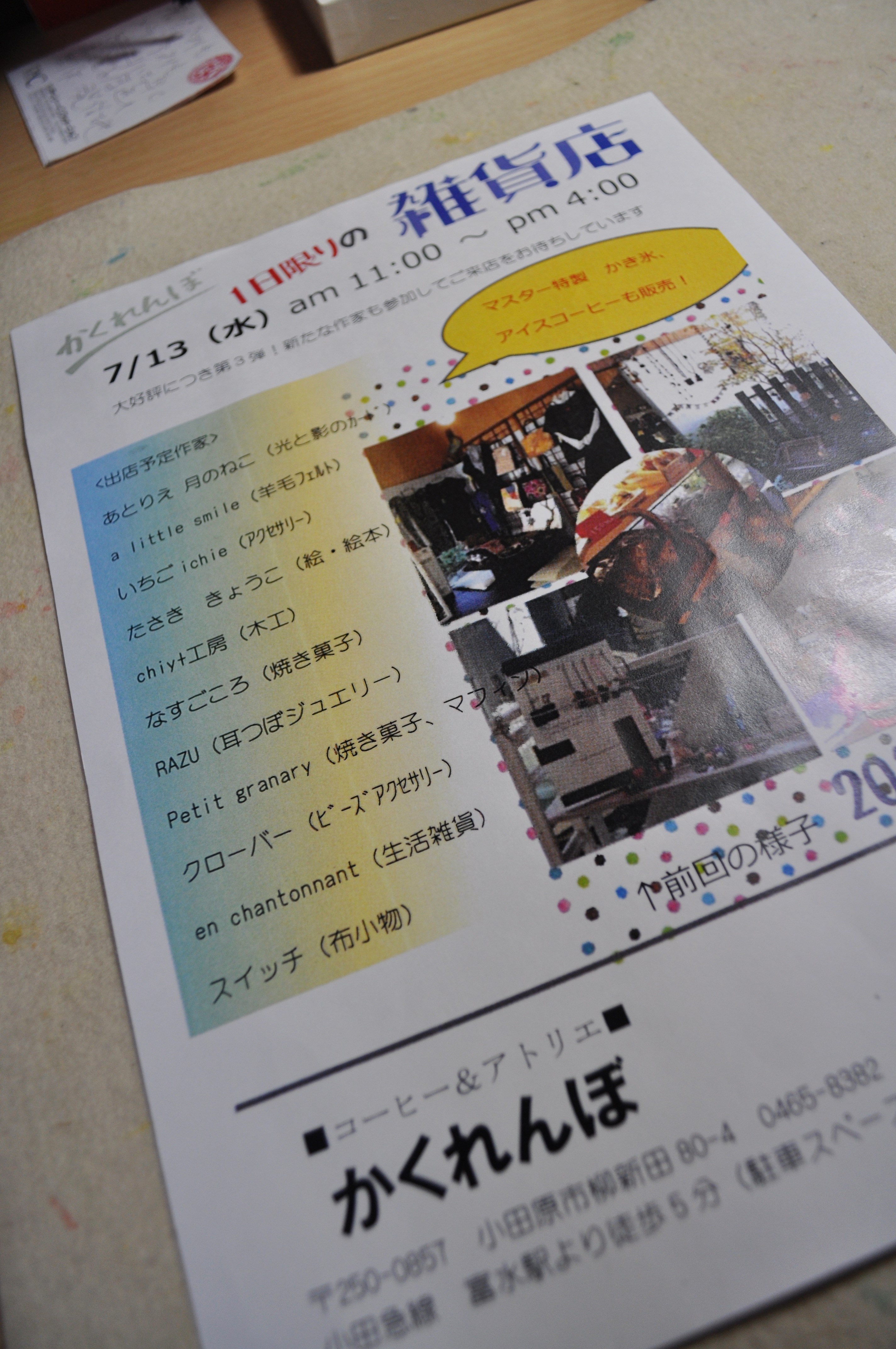 かくれんぼもお仲間に入れてもらって、カップ珈琲とカップかき氷(どちらも200円)をご提供。