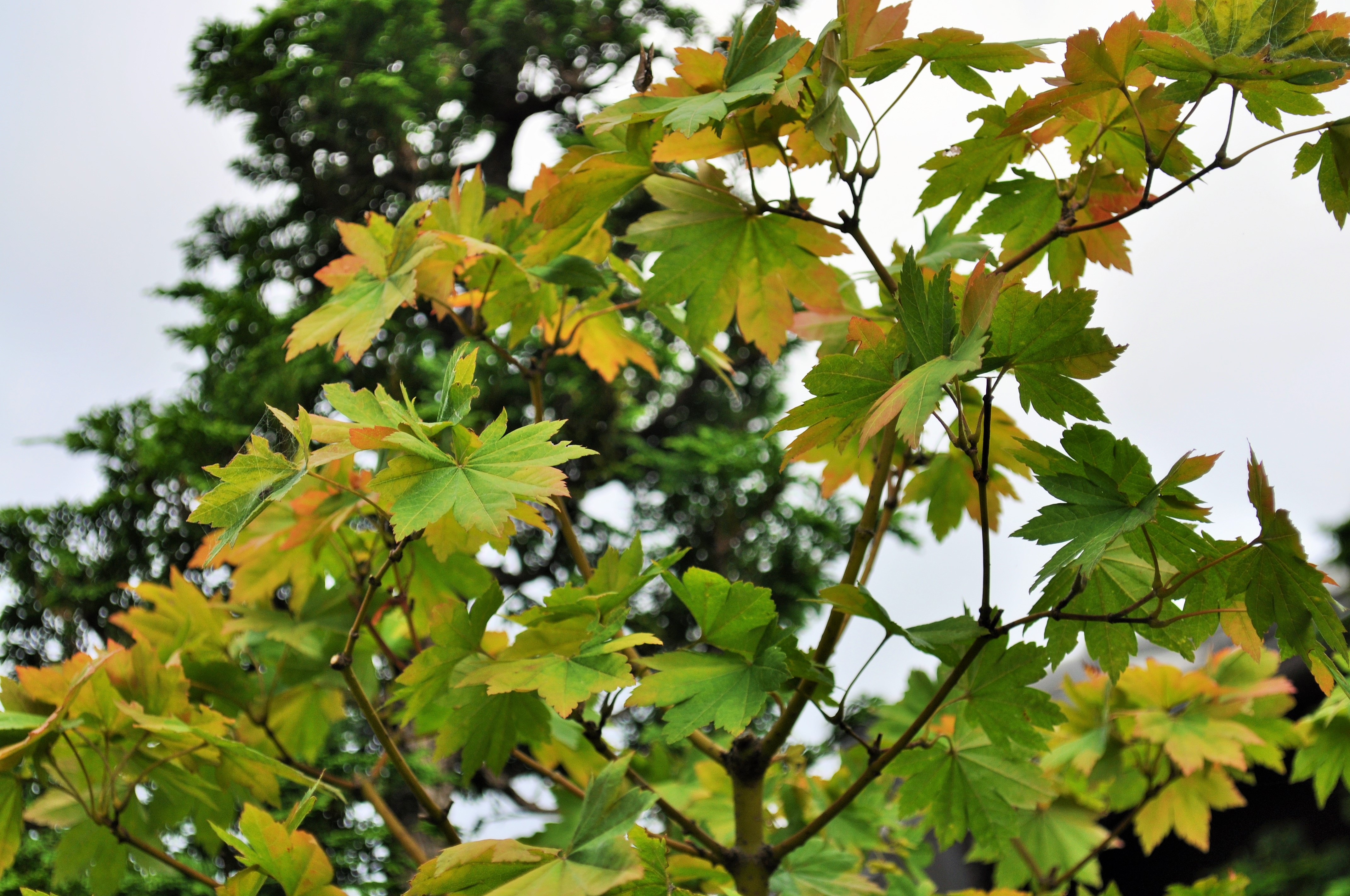 枯山水の庭の木々が少しずつ変化を見せ始めました。