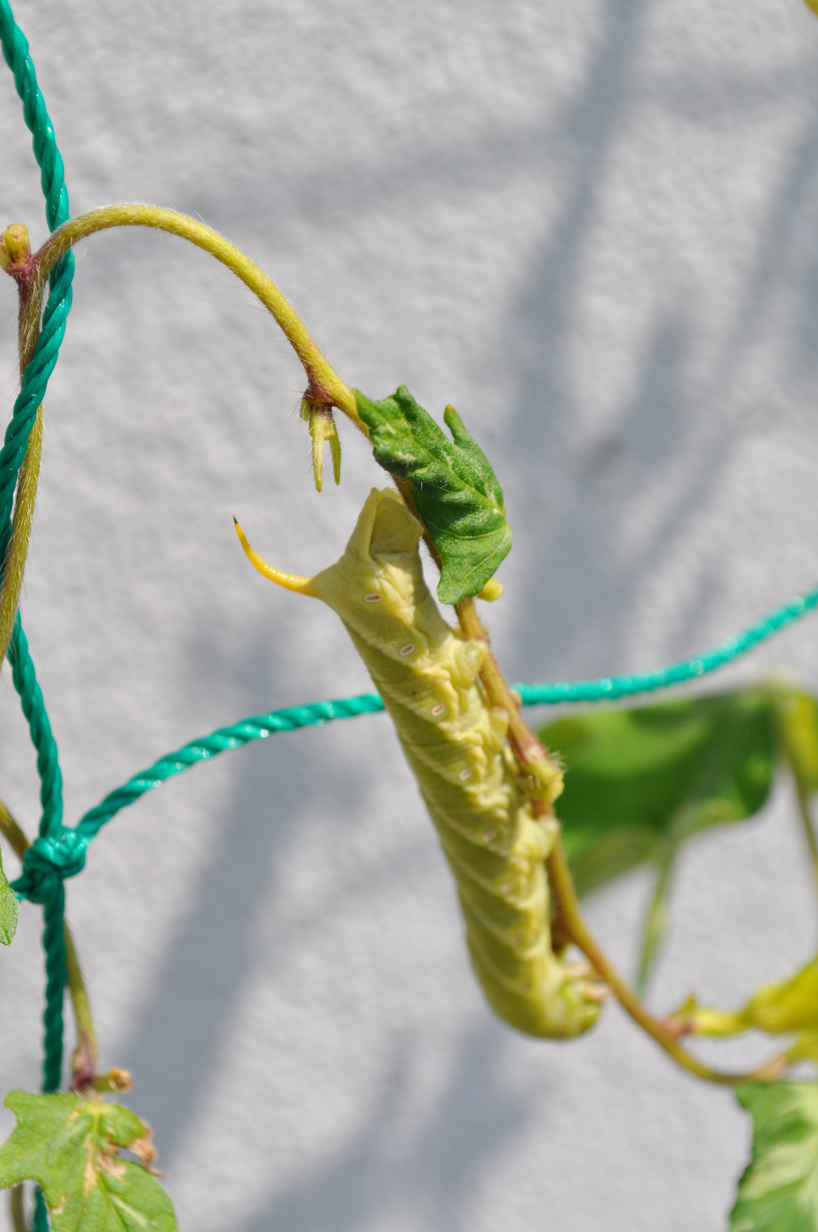 調べてみると、エビガラスズメという蛾の幼虫のようです。