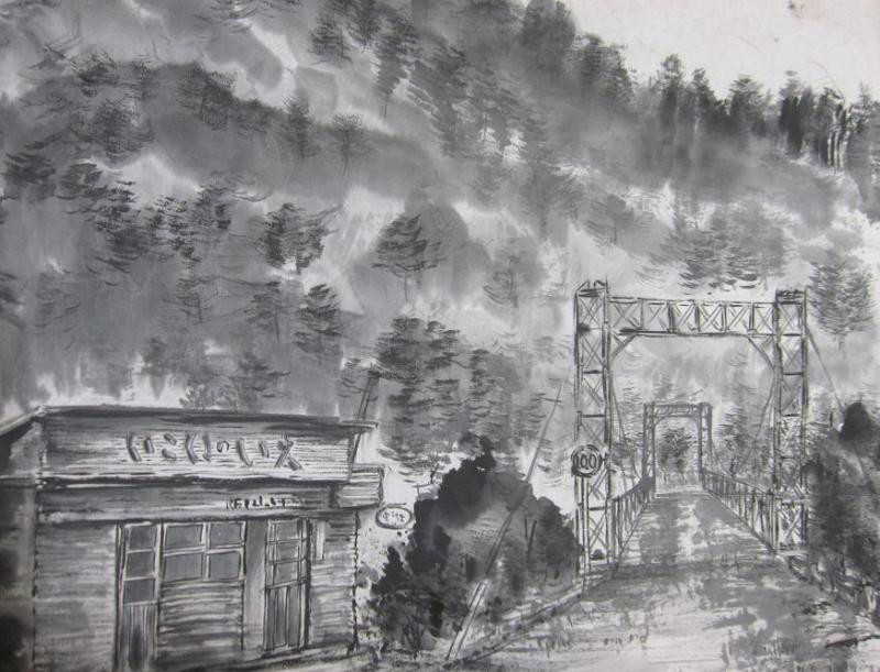 丹沢湖が出来る前のそこにあった集落を描く一枚一枚から