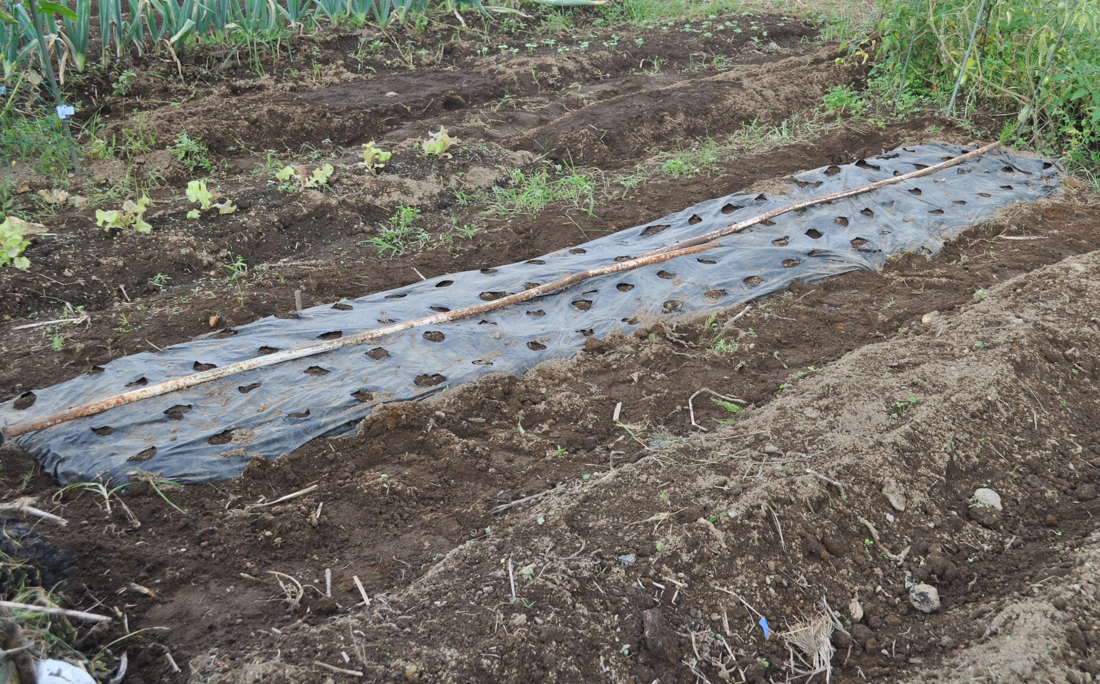 来年もおいしいニンニクを収穫したいと、黒マルチを。