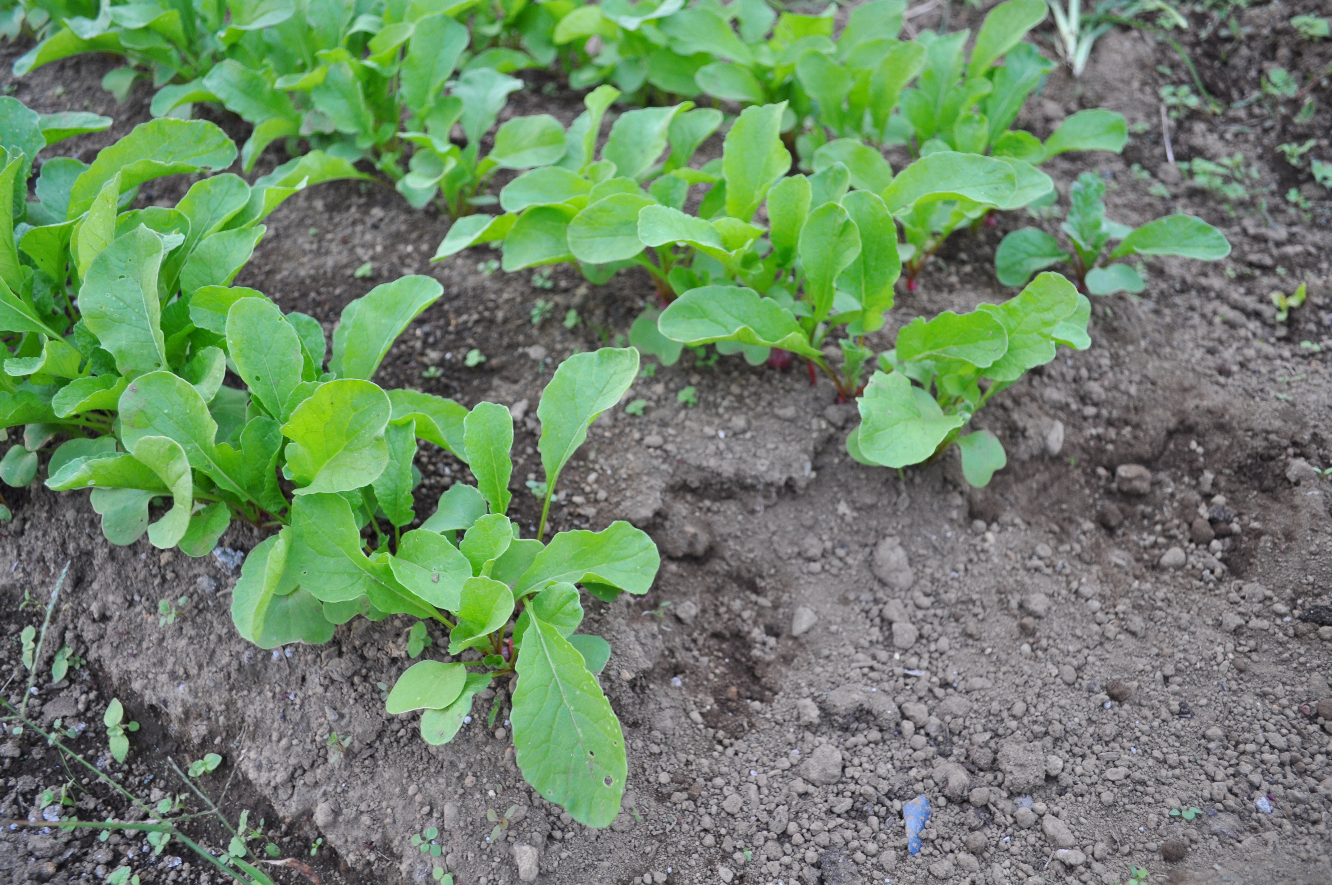 間引きした葉っぱたちは、新鮮野菜として食卓に並べて食しています。