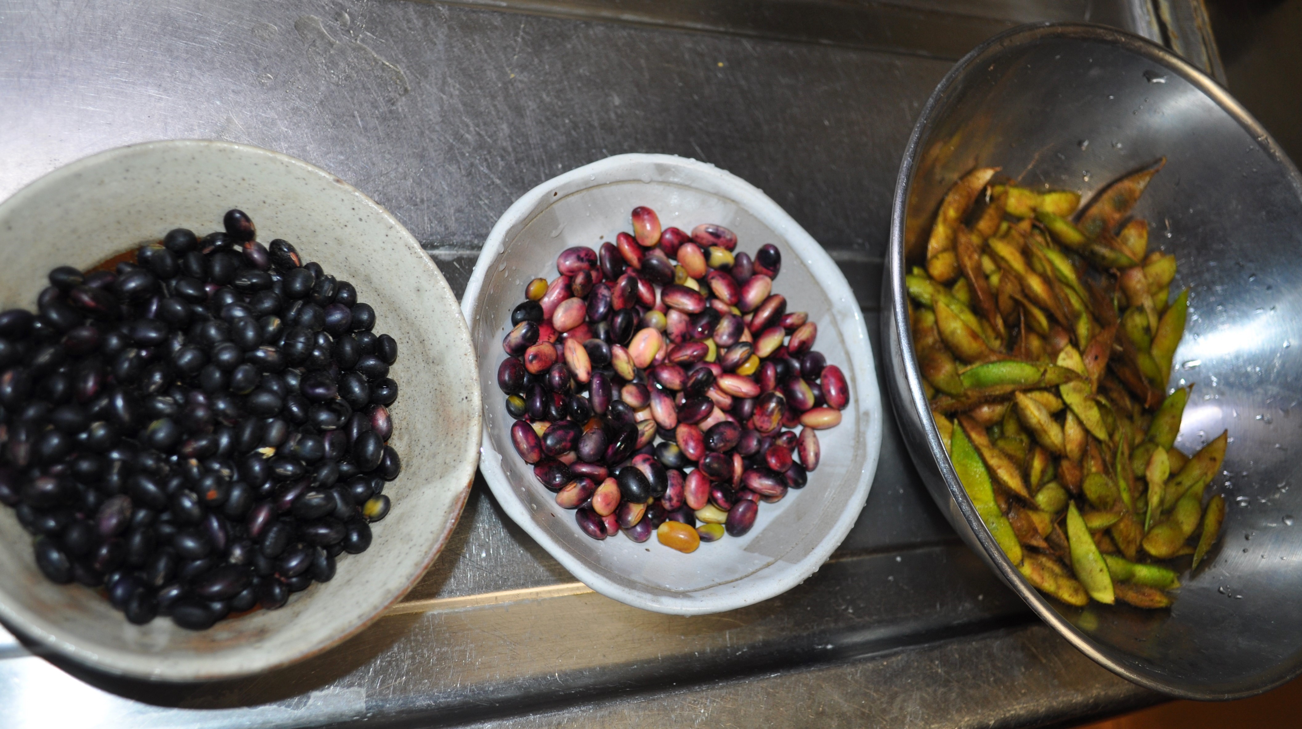 ちなみに、真ん中のお豆は、弱火で煮込んで、晩のおかずの一品となりました。