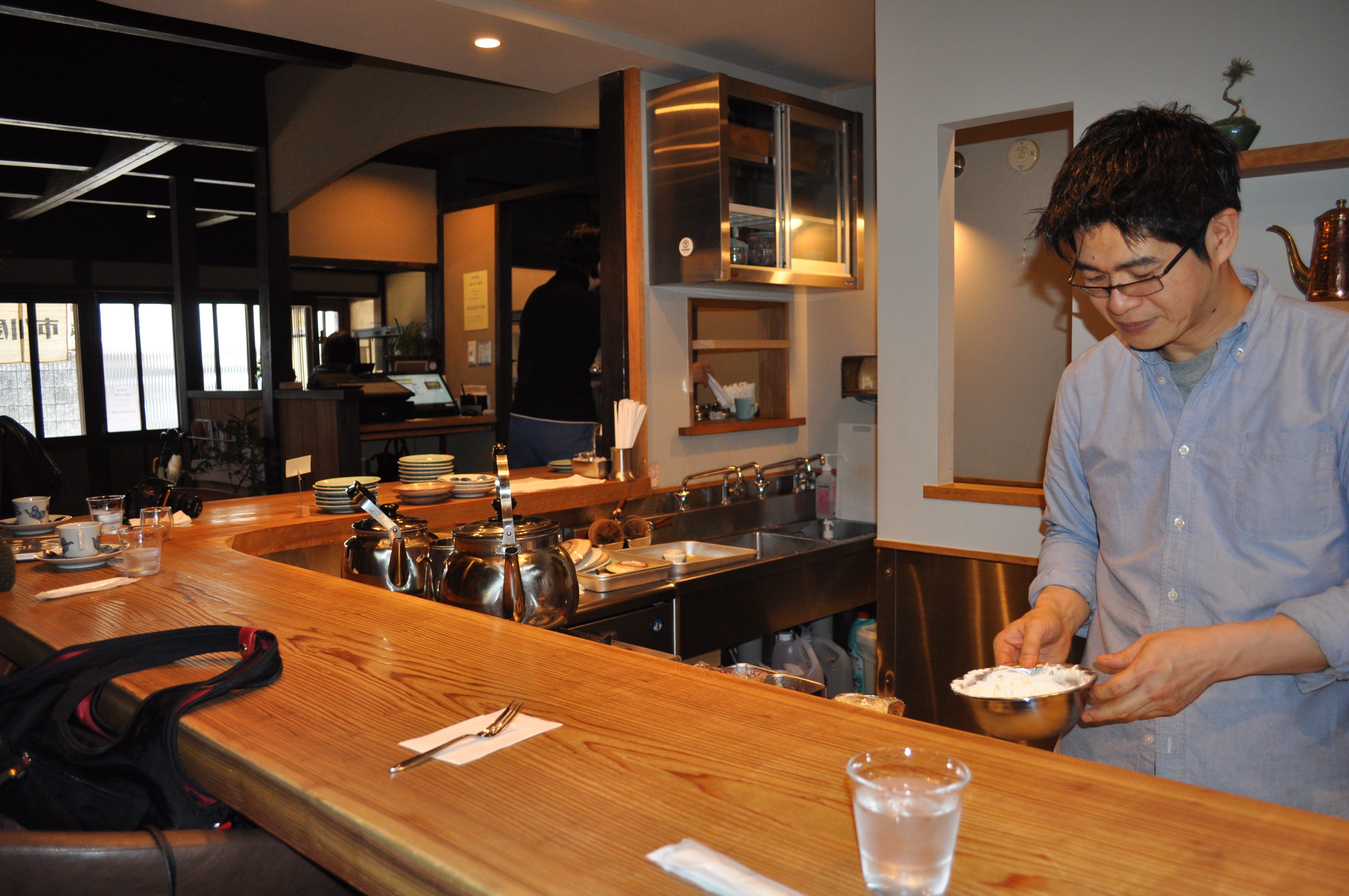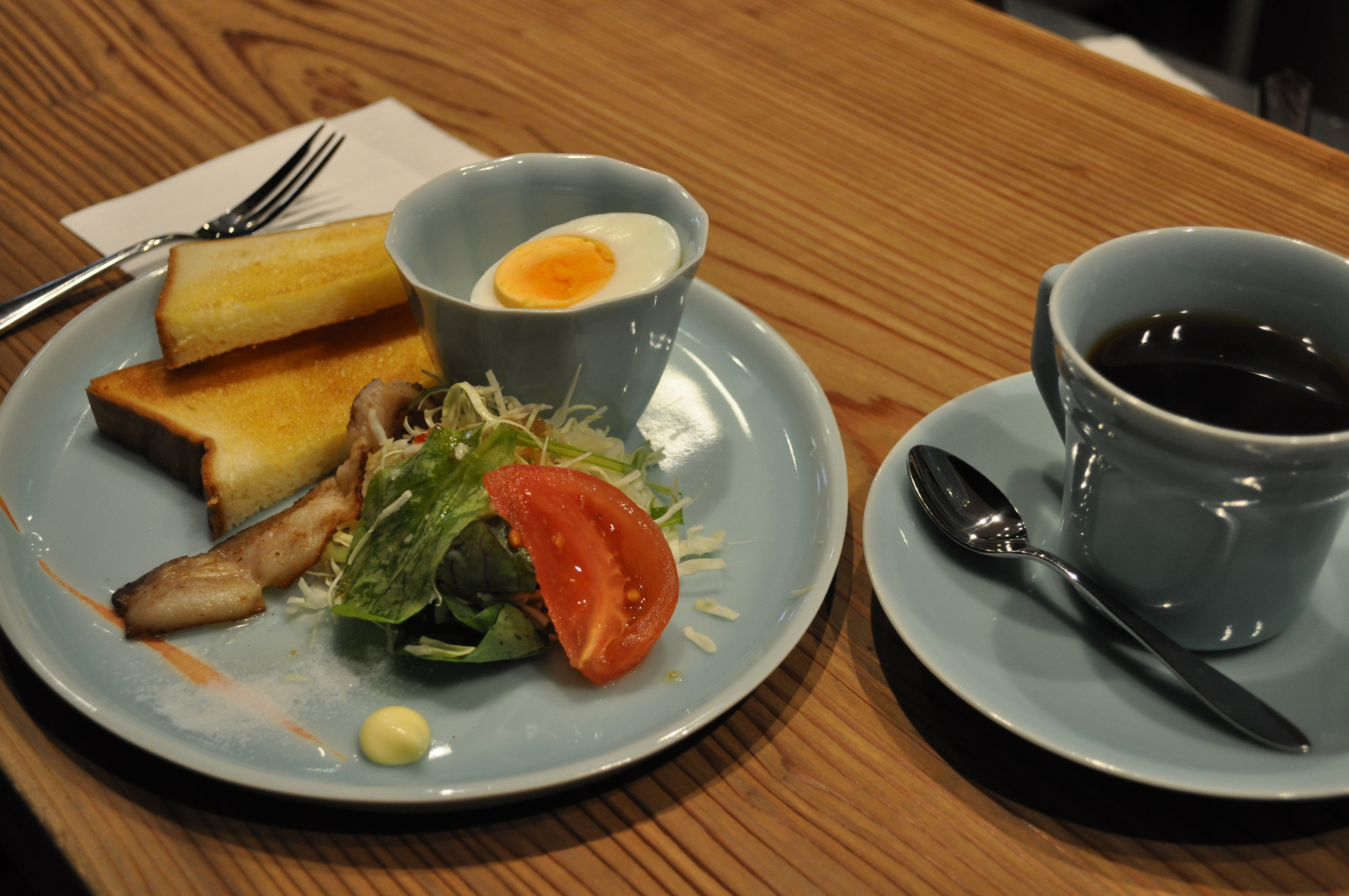 運よくカウンターの隅に座れて、モーニングセットを注文。