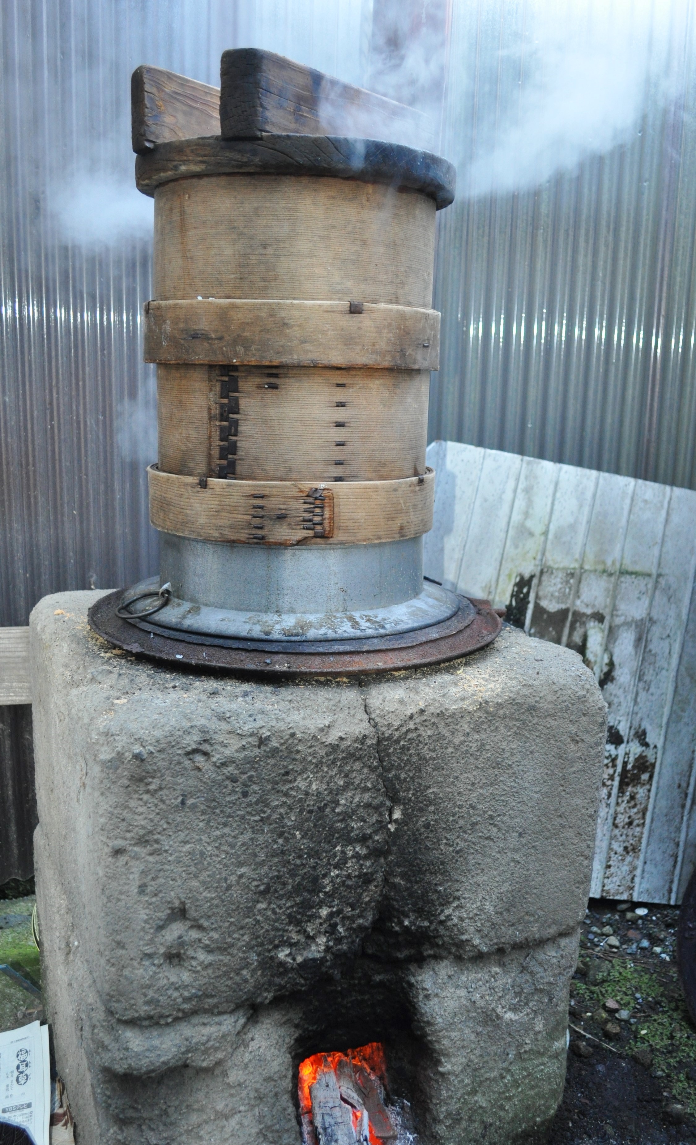 赤々と燃える炎と白くかぐわしい湯気。
