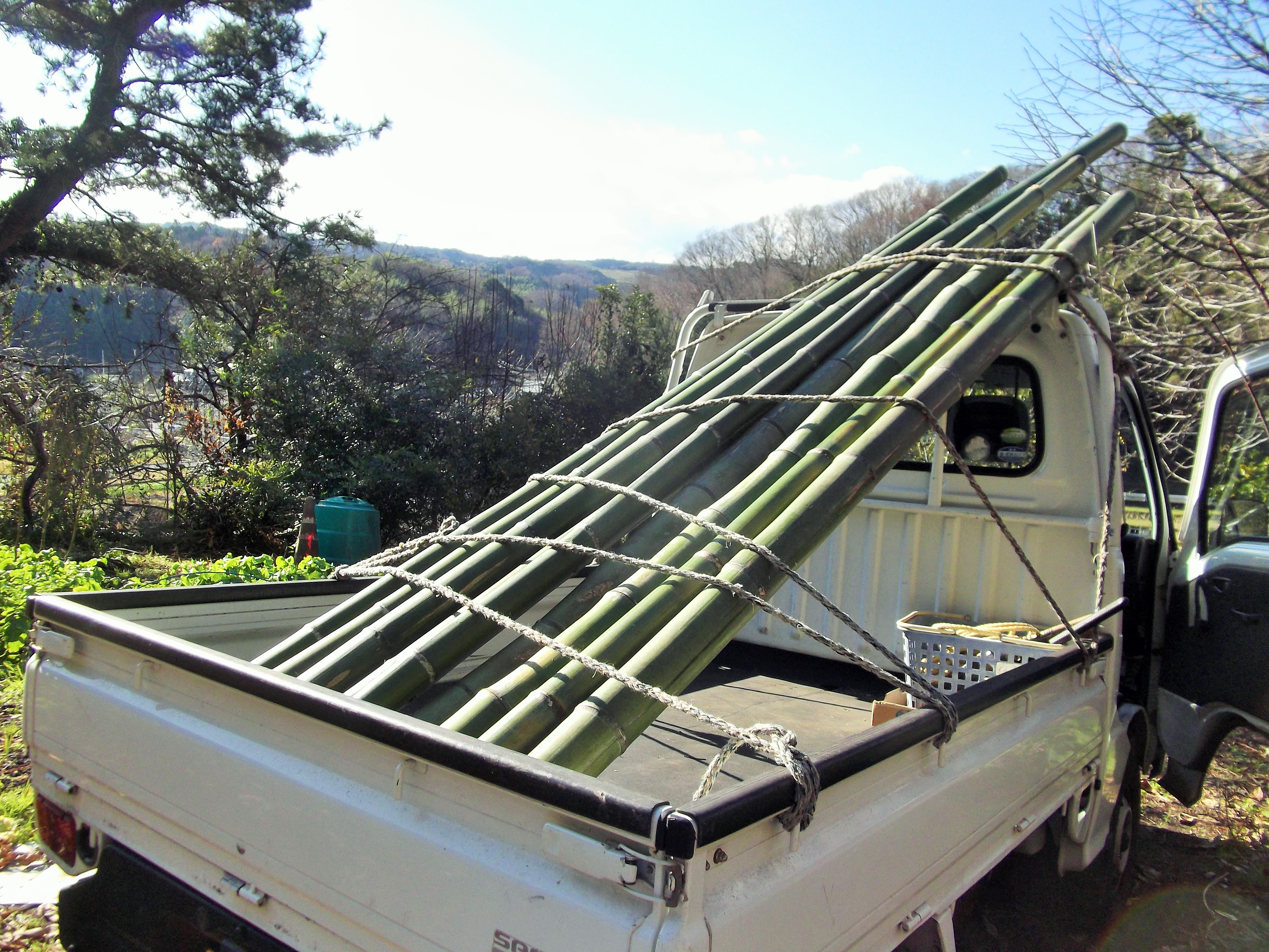 画像(昨年度のもの)より、1.5倍の竹を今年も軽トラで運んできました。