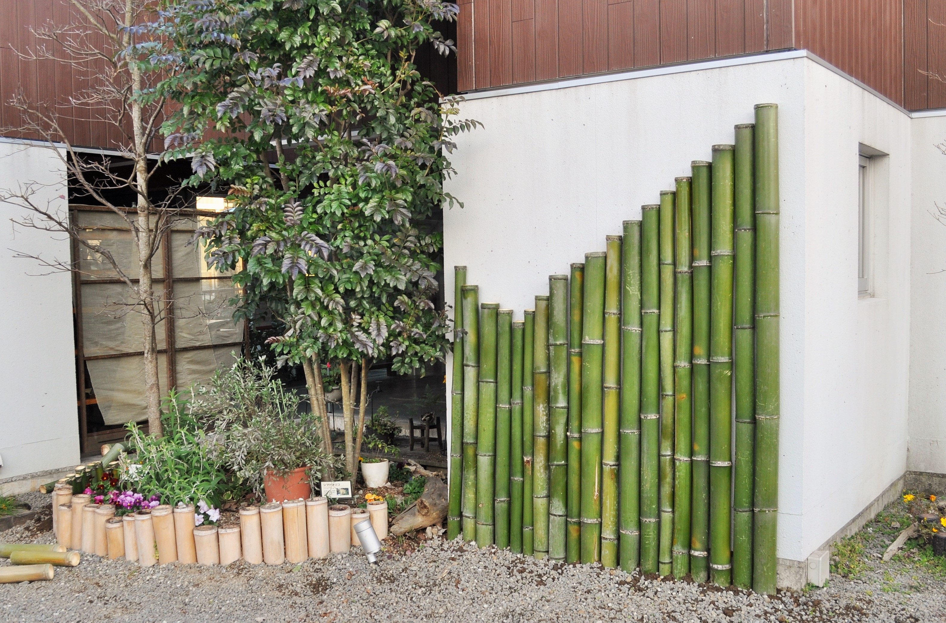 完成した(一部流木部分あり)竹垣は今度お店にいらしたとき、見てやってください。