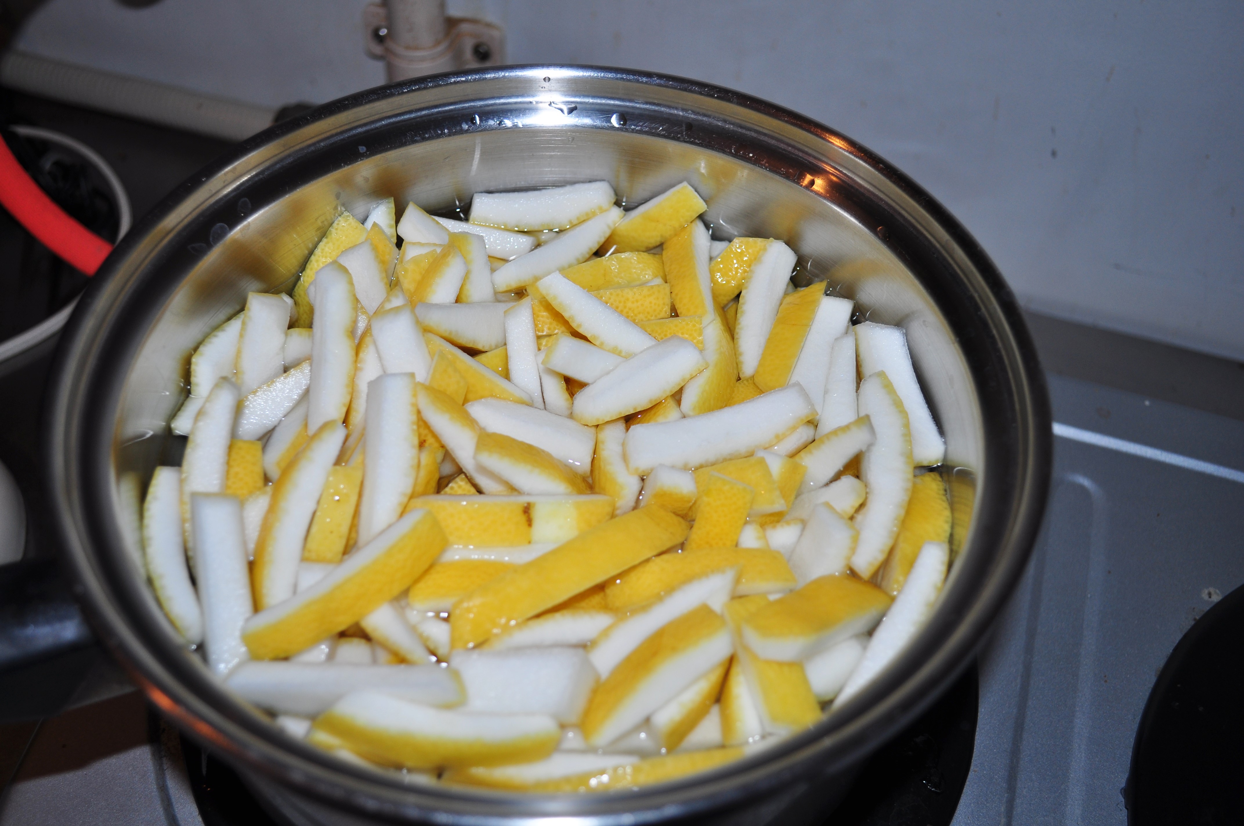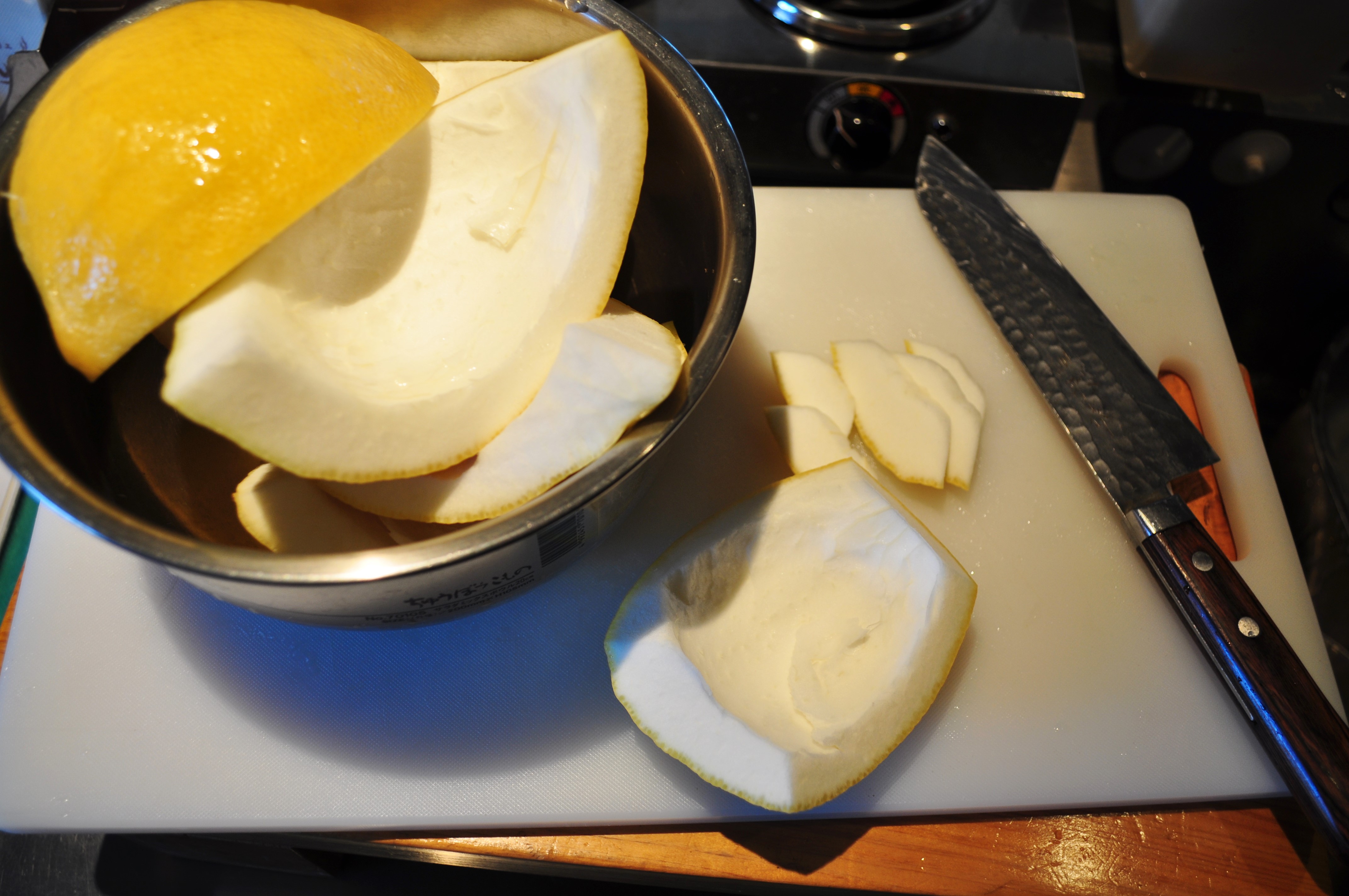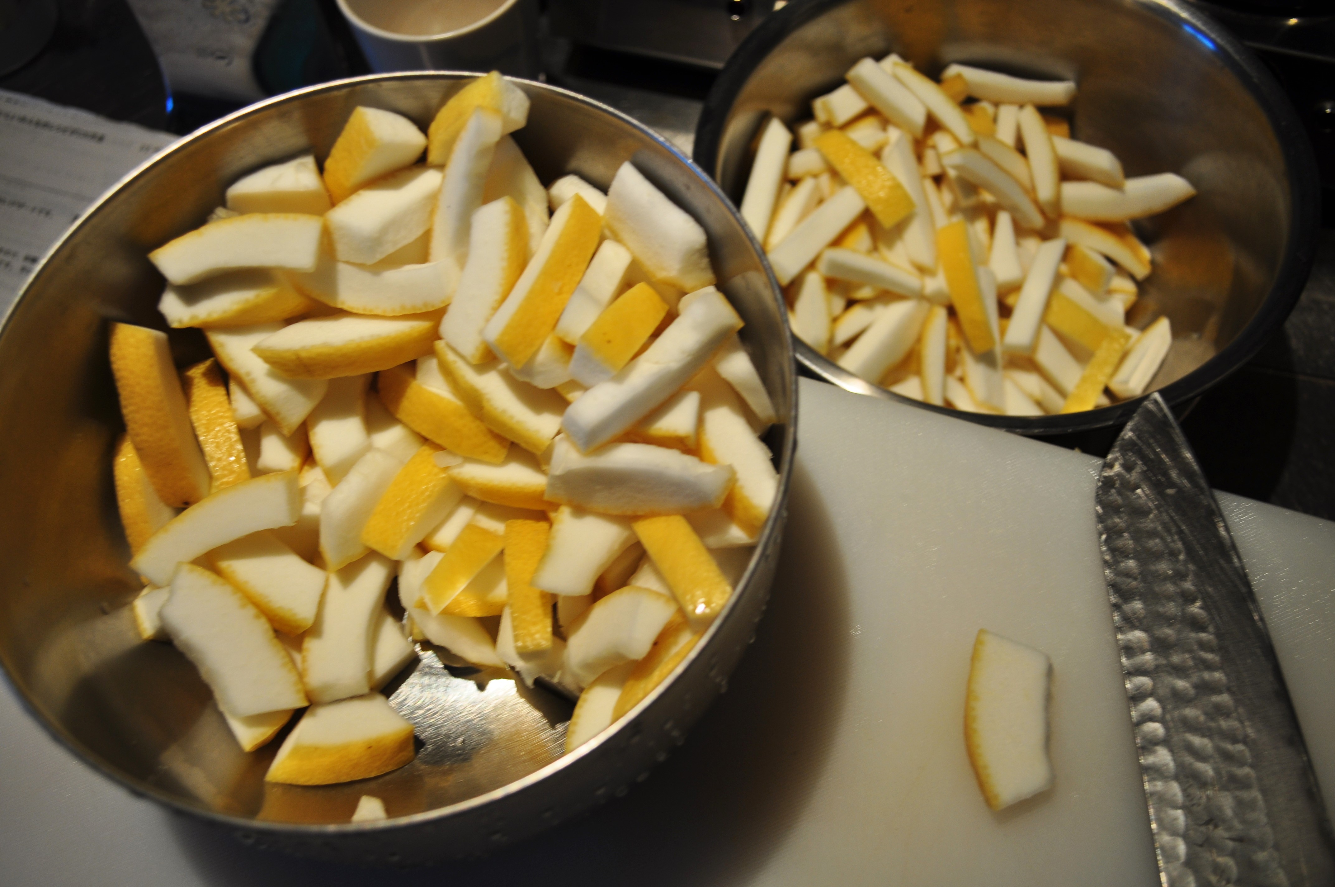 厨房にこもってレモンピールづくり。
