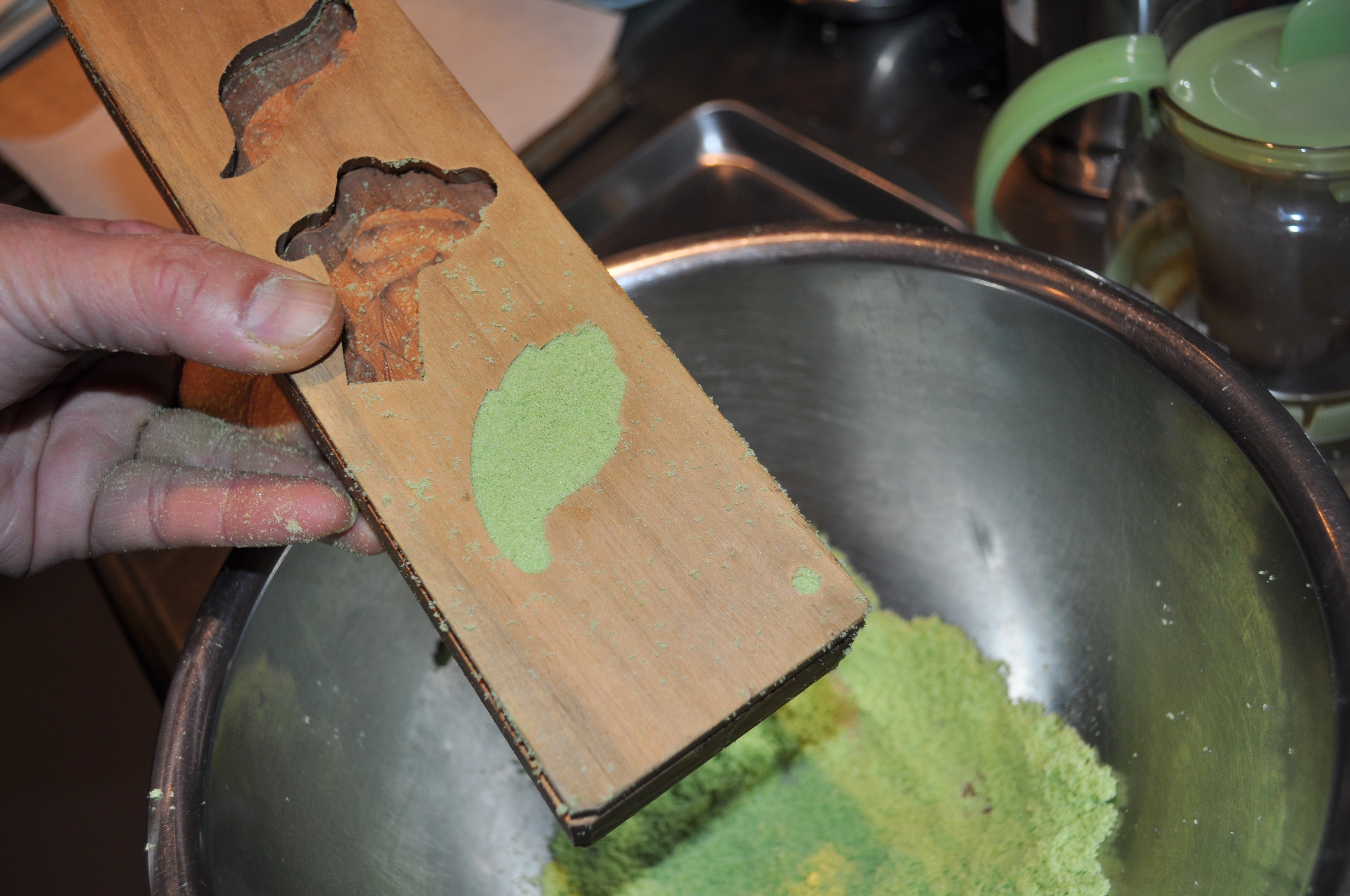 抹茶を混ぜ合わせて色付け。(食紅でも可)