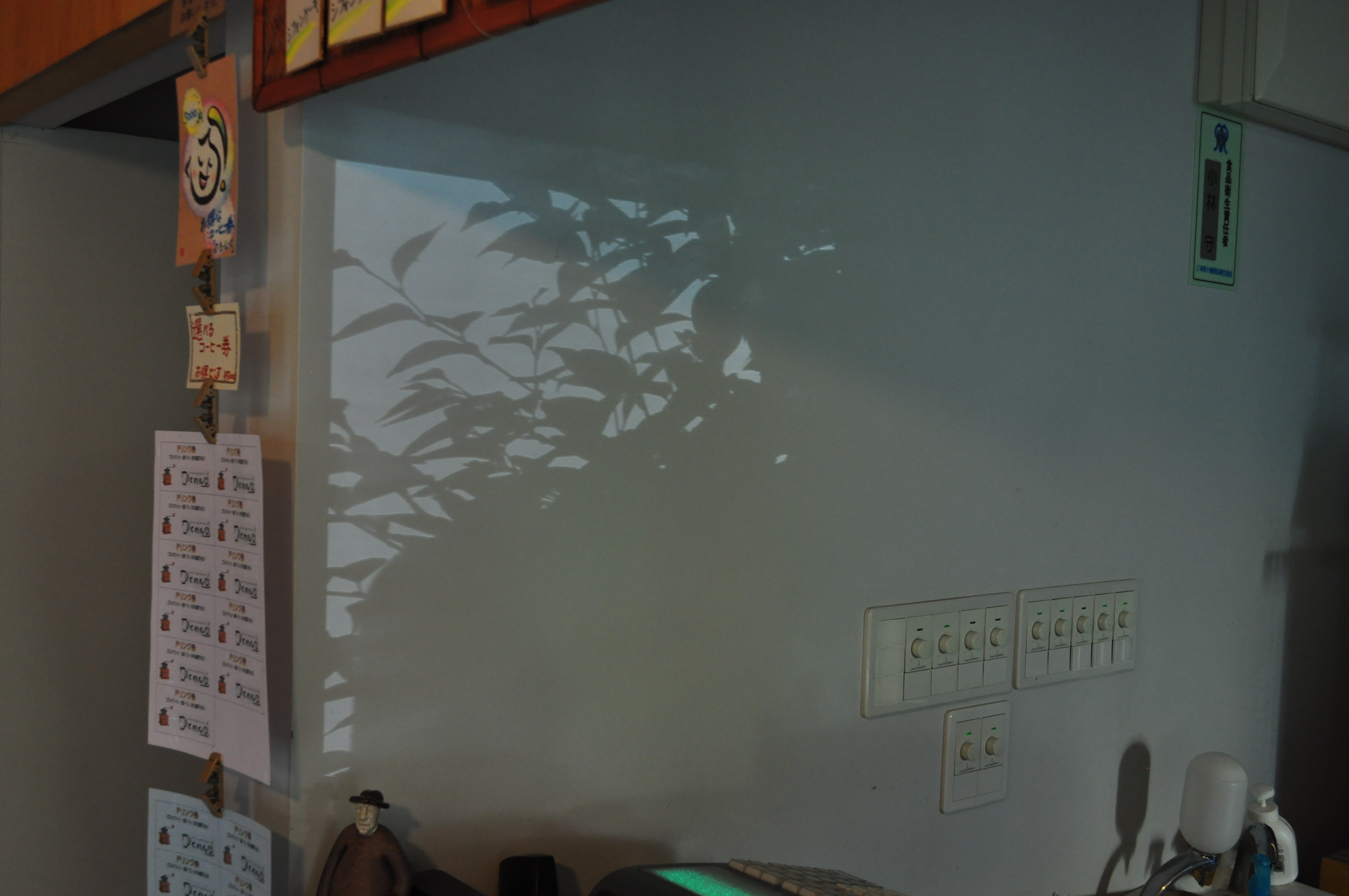 レジ横の白壁がモノトーンスクリーンに変身。