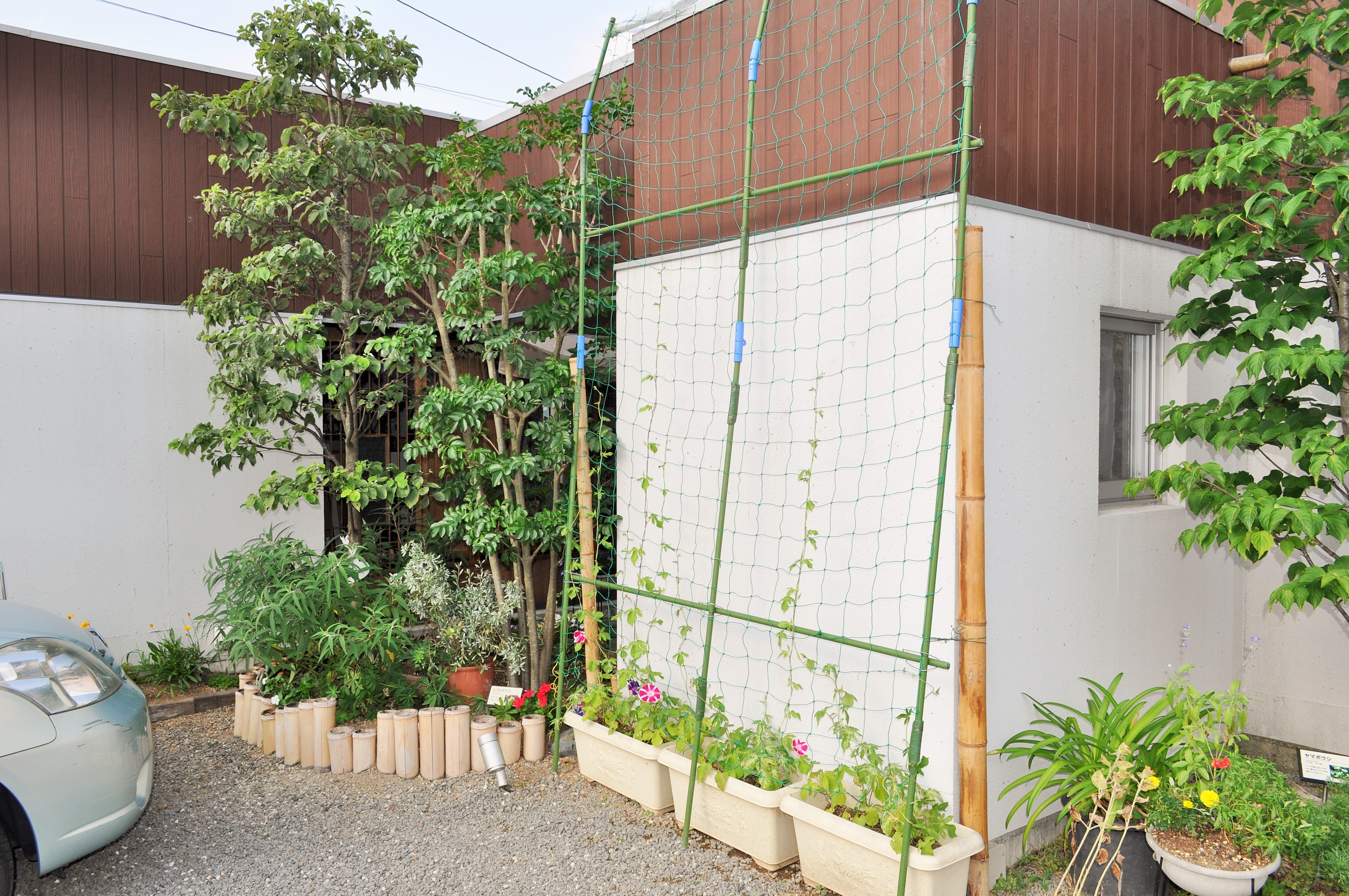 例年は、前庭によしずを立てかけていましたが