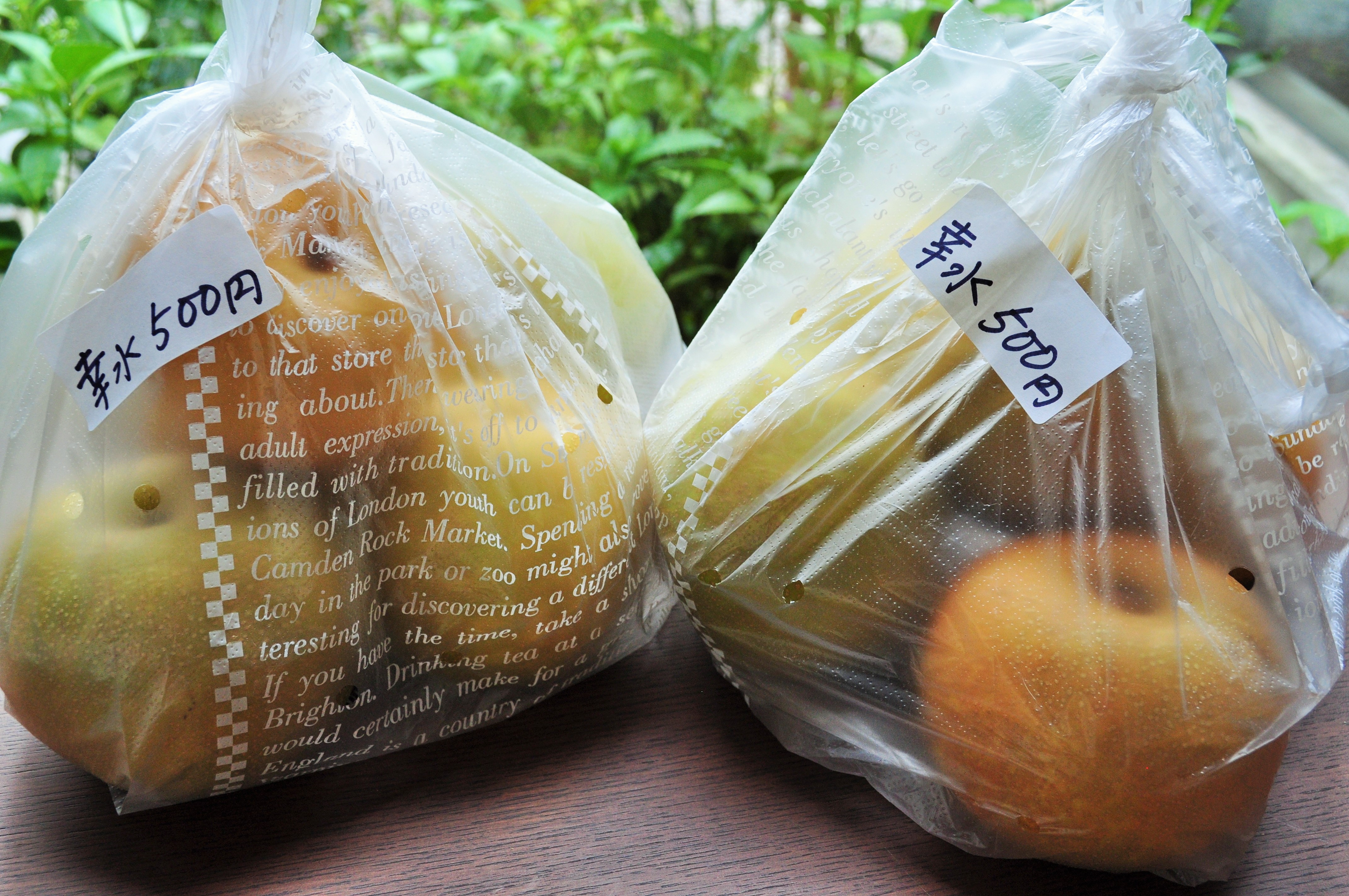 『藤稔』と『紅伊豆(赤みがかった種類』の詰め合わせで700円(消費税込み)。量ったら1キロありました。