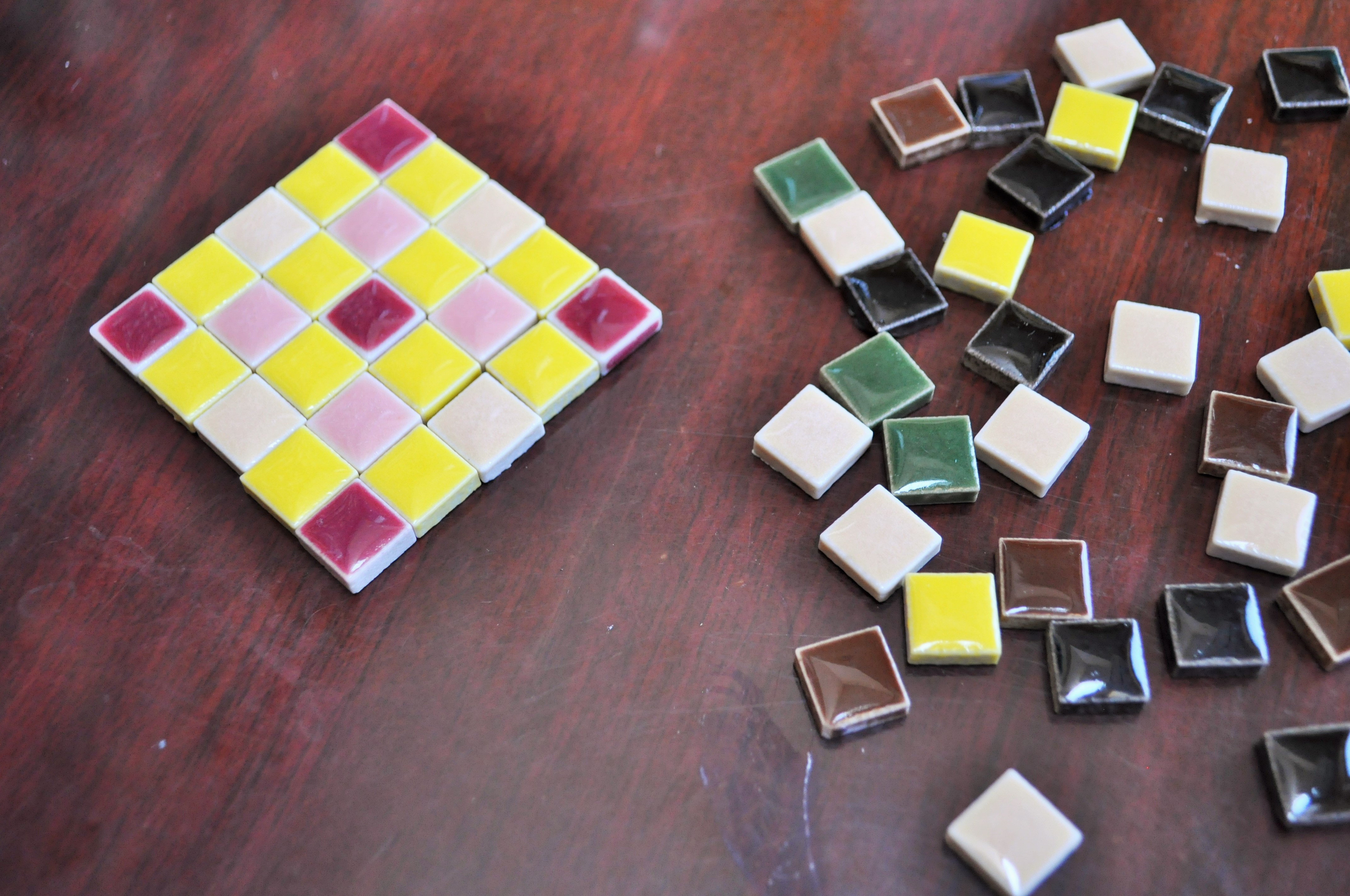 こちらは、私が美濃で買い求めてきた、小さい小さい色付きタイル。