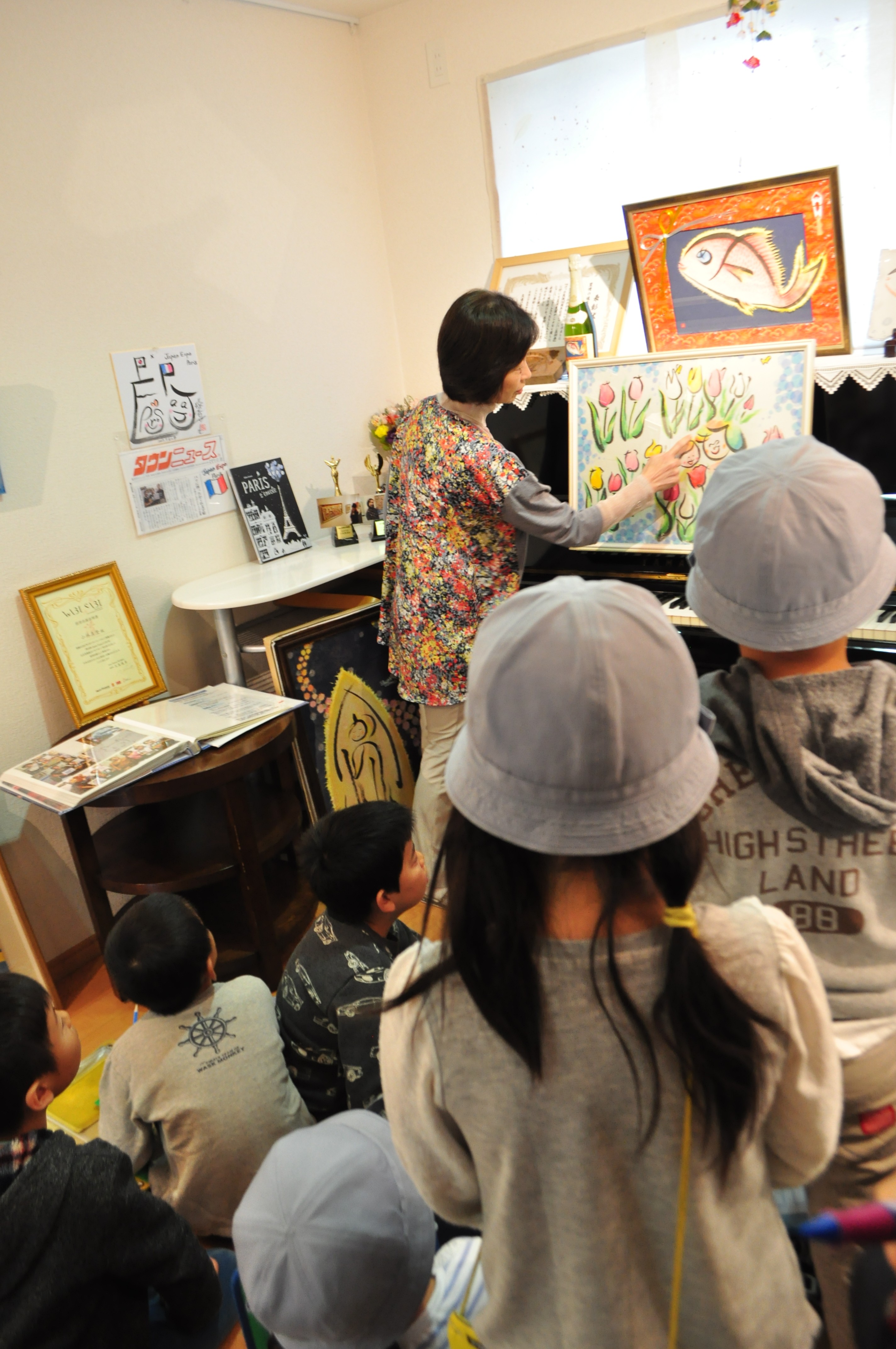 ゲーム感覚でかくれ文字絵の説明を聞いたり、