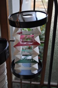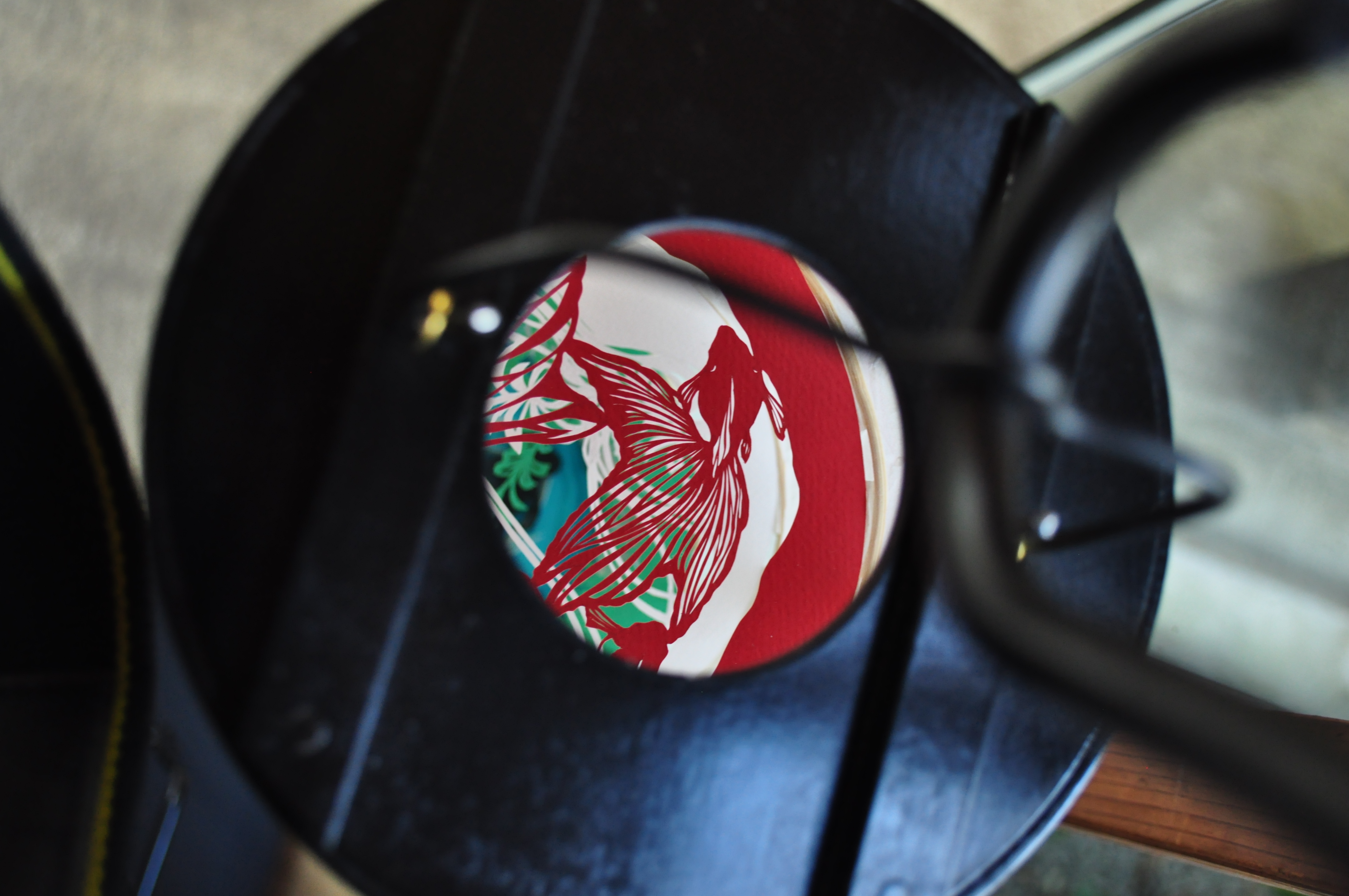 ぜひ、上の穴からのぞいてみて下さい。(金魚が泳いでいますよ)