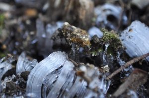 たまたま北庭で見つけた霜柱。私は一眼レフのデジカメで撮影。