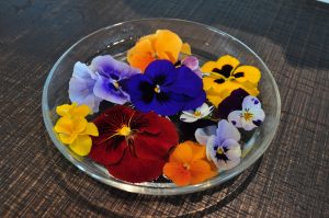 咲き誇っているパンジーやビオラ。