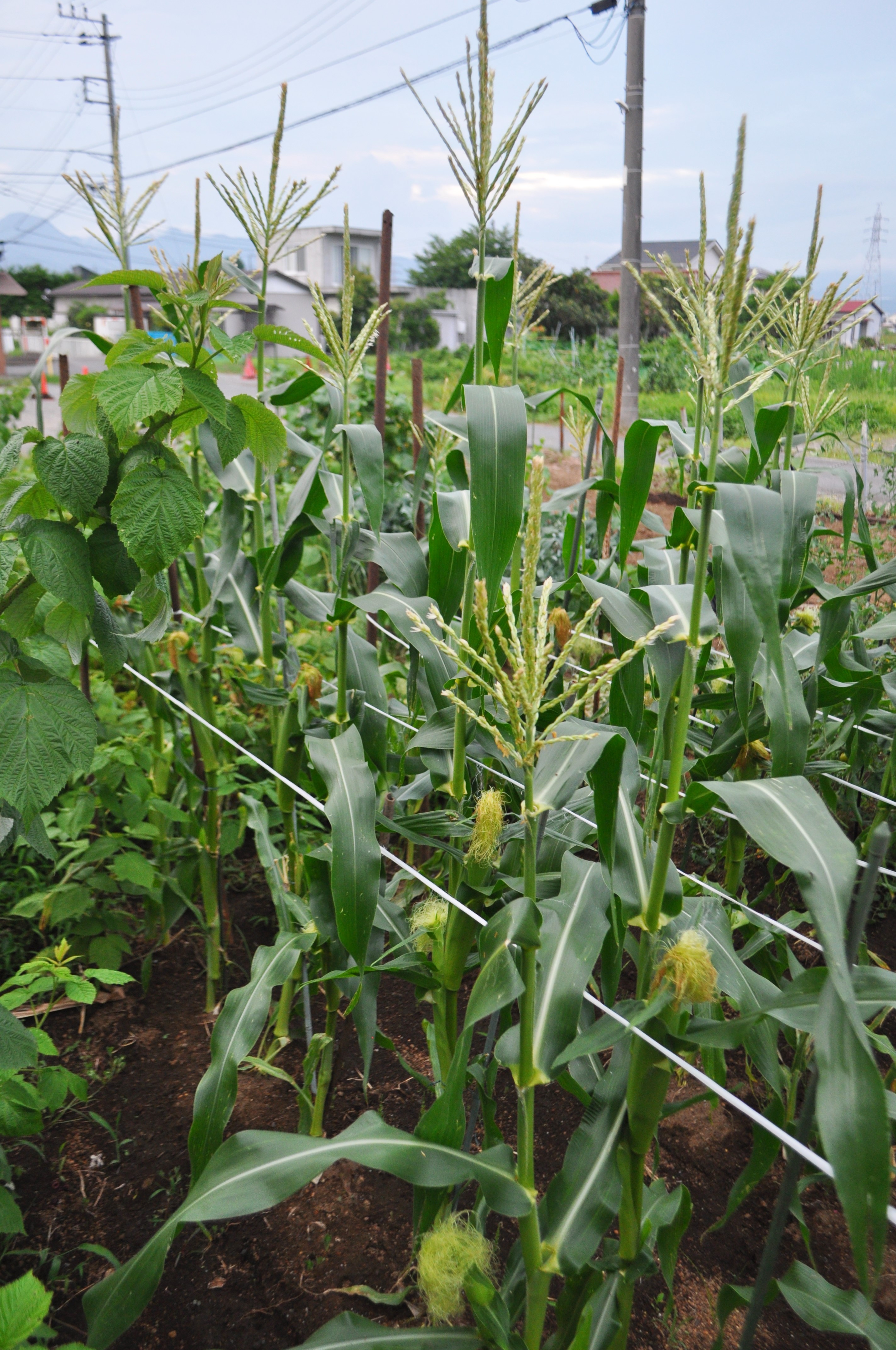 ①トウモロコシは、自家受粉できないから3列ぐらい並べて植えること