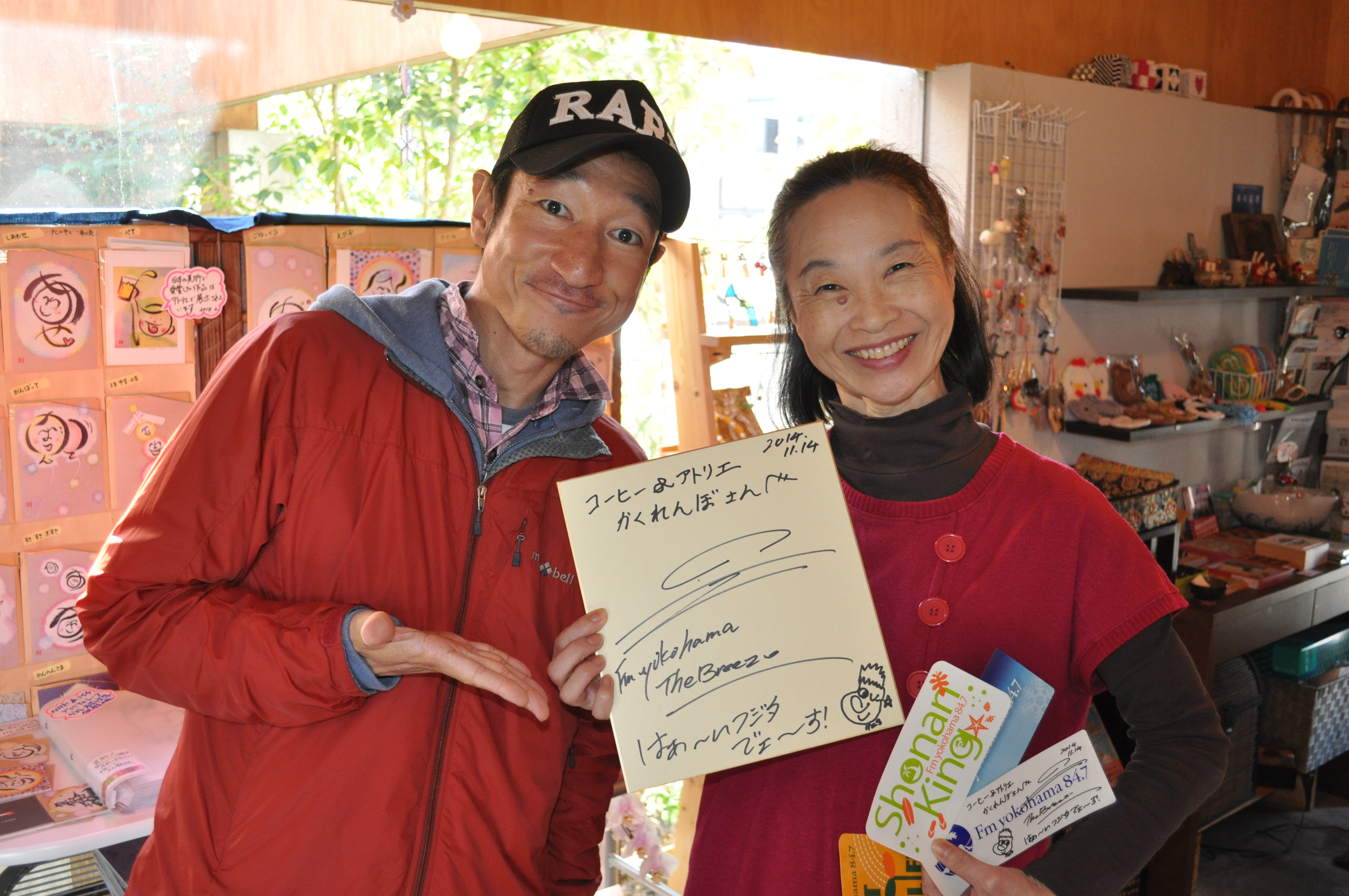(その時の色紙やステッカーなどは店内に掲示してあります。)