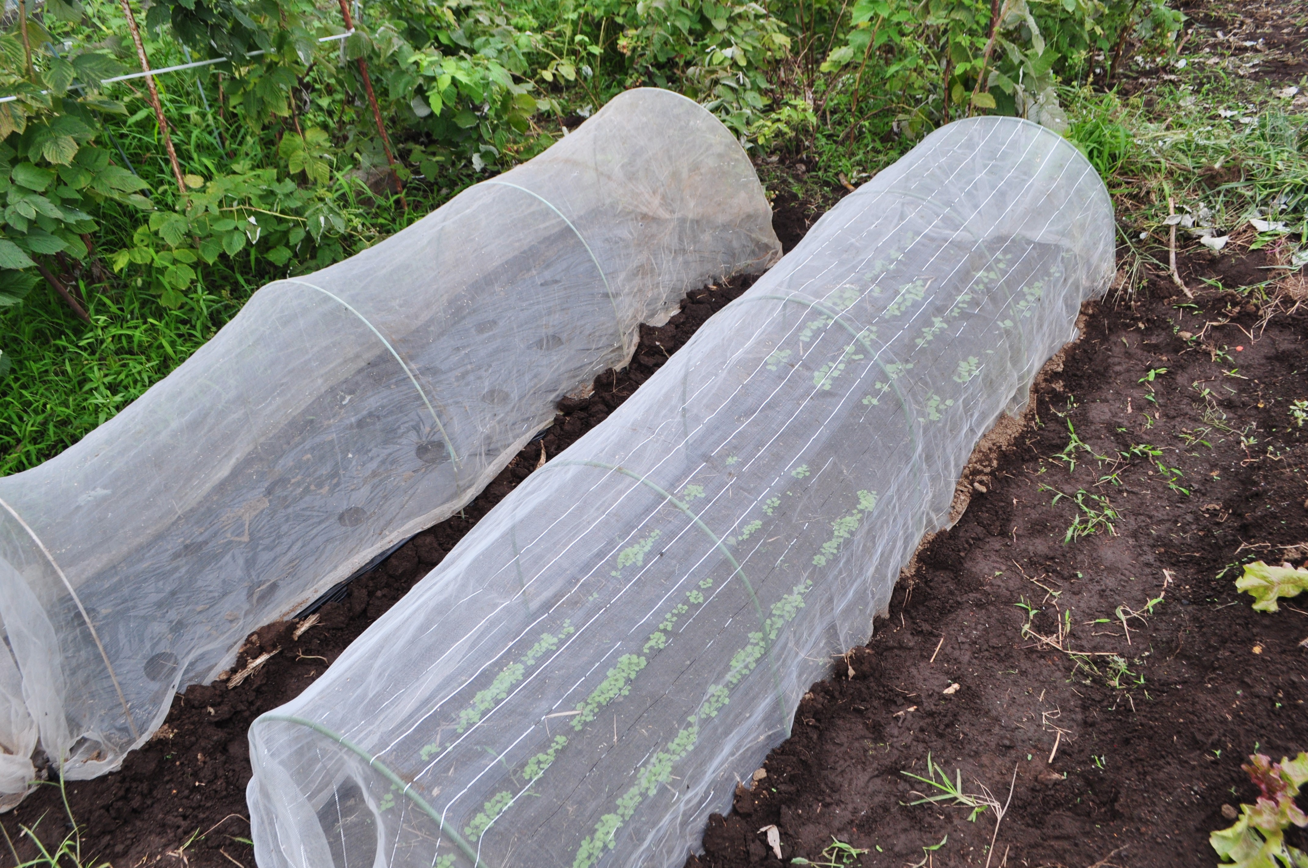 種まき・防虫ネットやら黒マルチがけ作業をしました。