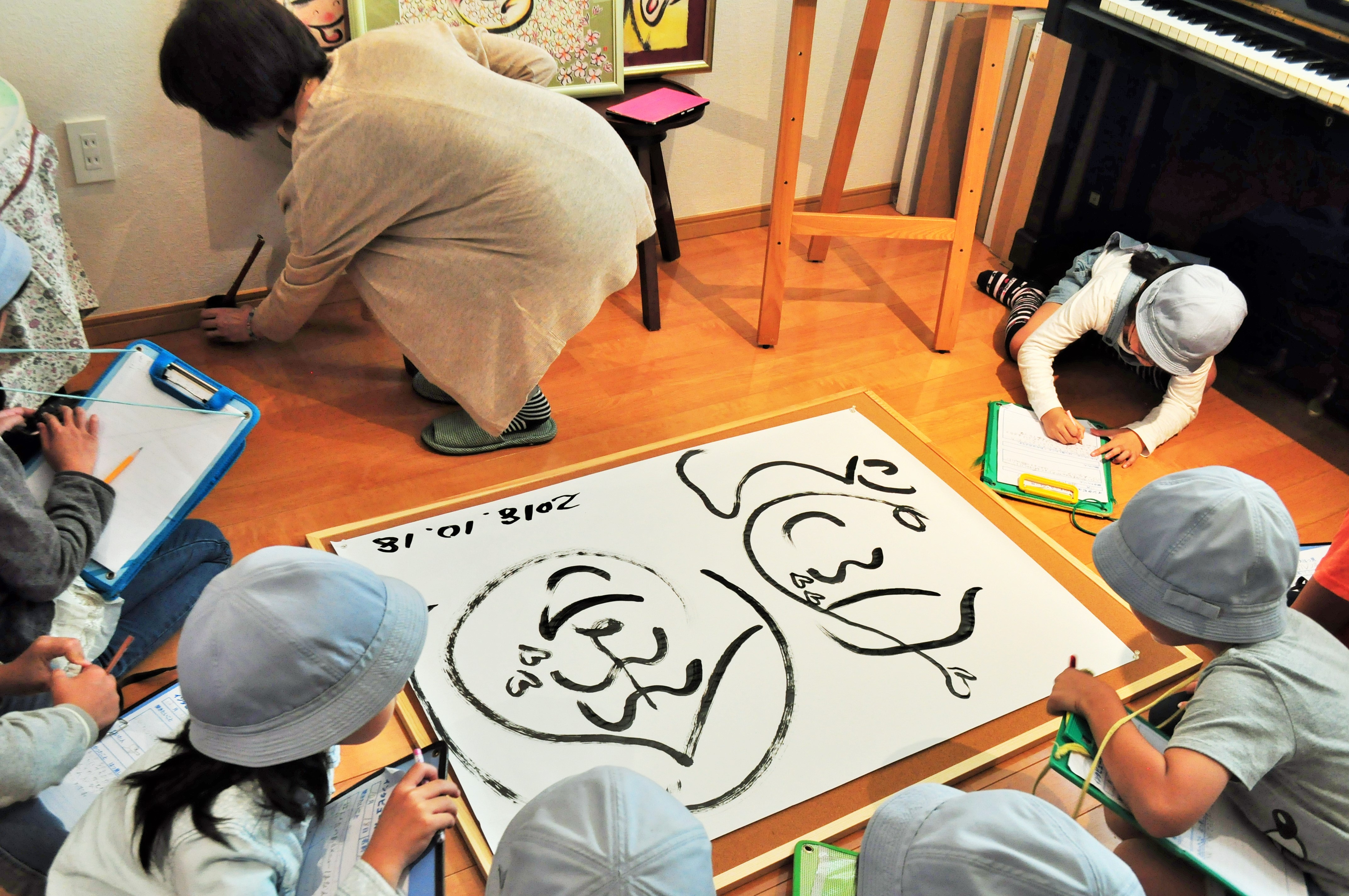 「来てくれたお礼に、この場で『かくれ文字絵』を描いてあげようと思うんだけど、どんな言葉がいい?」
