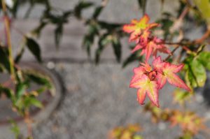 でも、一昨日、ドア付近の『イロハモミジ』に赤やオレンジの新しい葉を発見。