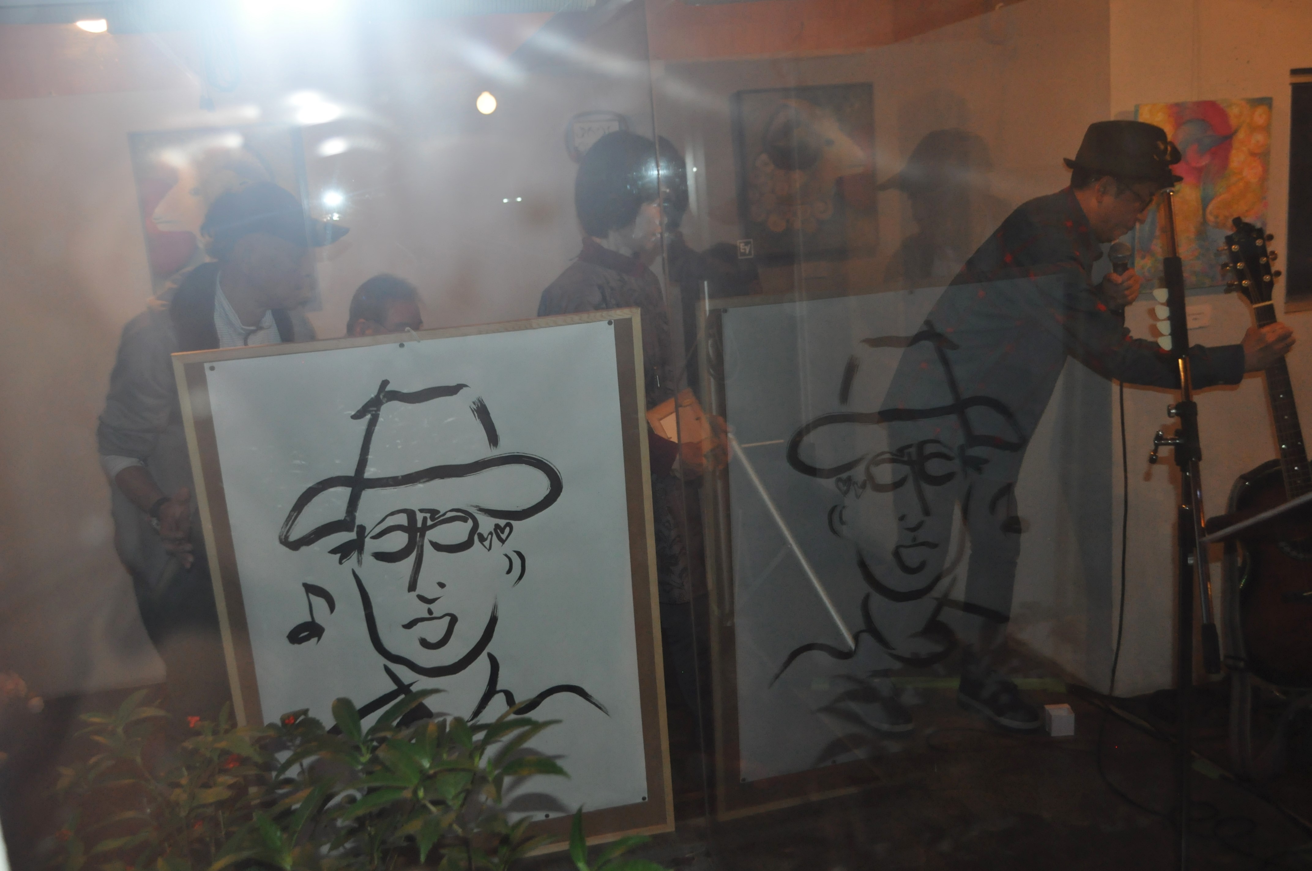 作品を展示中の黒猫ネさんとかくれ文字絵作家が登場。