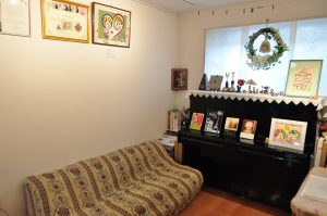 でも、かくれ文字絵作品を鑑賞しながら、ソファでゆるりとした時間を過ごしてもらうのもいいかも・・・