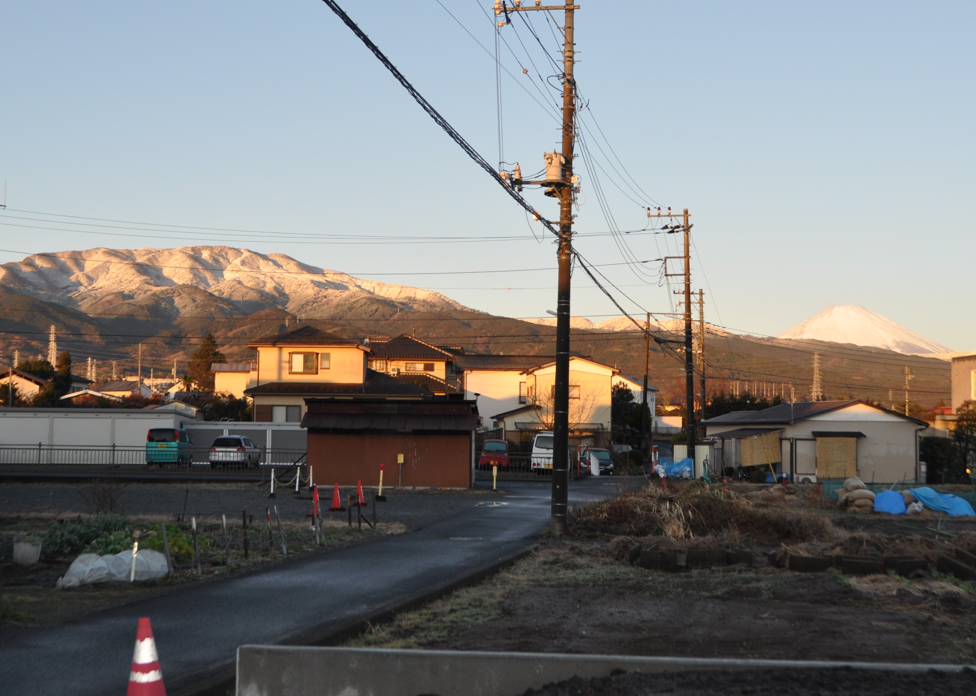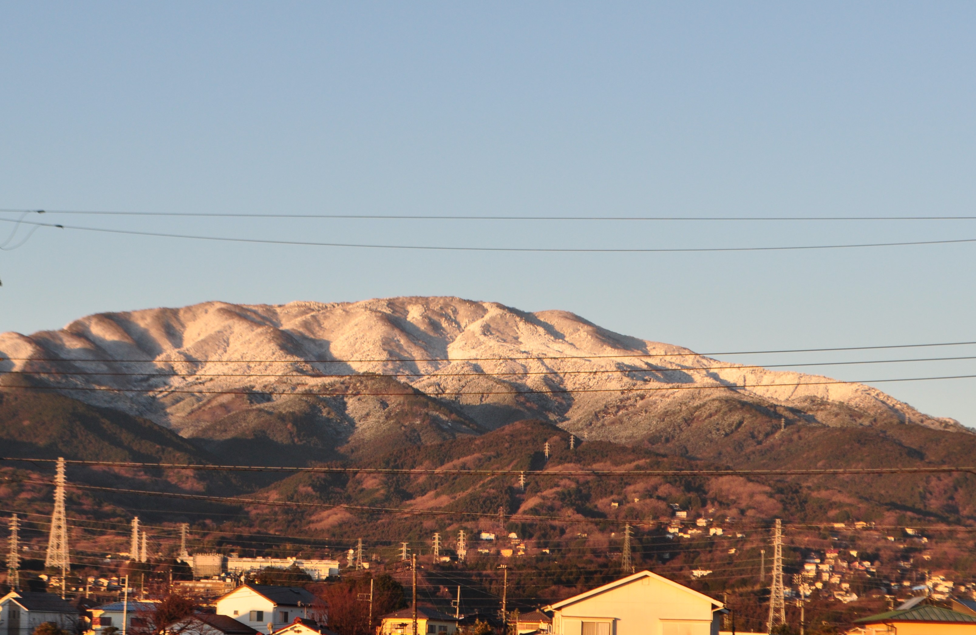 朝日を浴びて雪化粧(?)をした明神ヶ岳が。