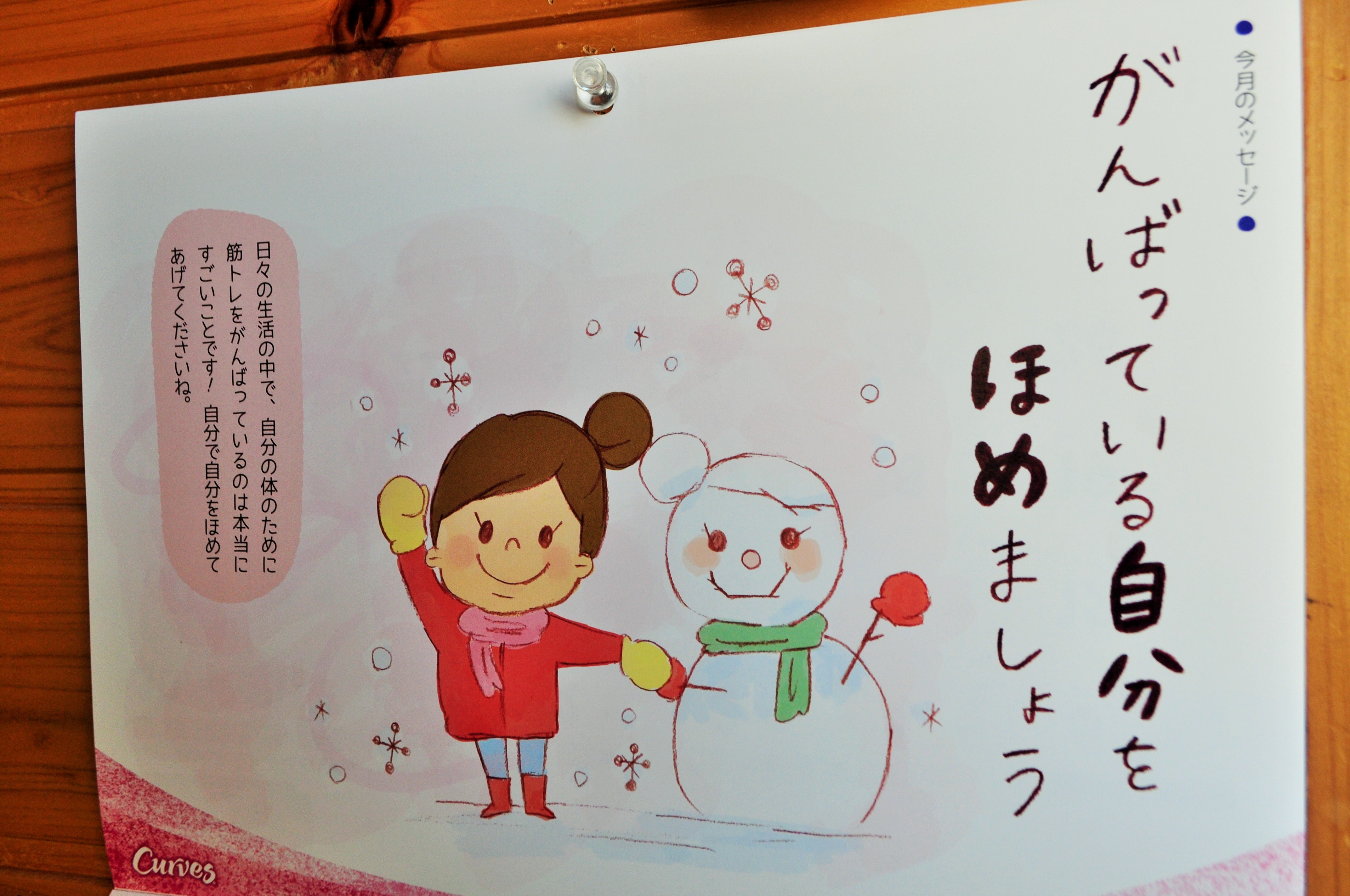 ふと見やると「がんばっている自分をほめましょう」の言葉。