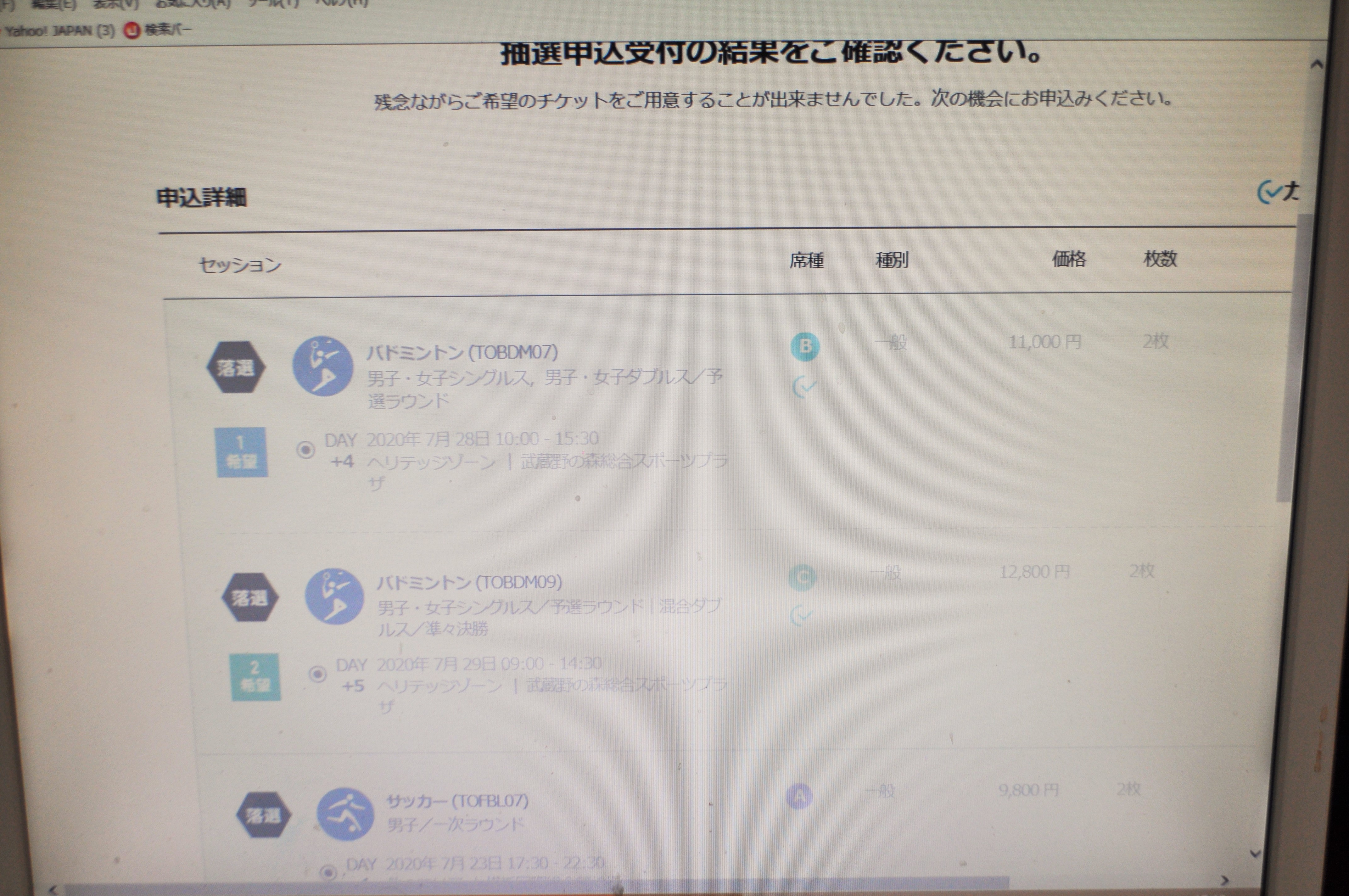残念ながら、バドミントンもサッカーも『落選』。