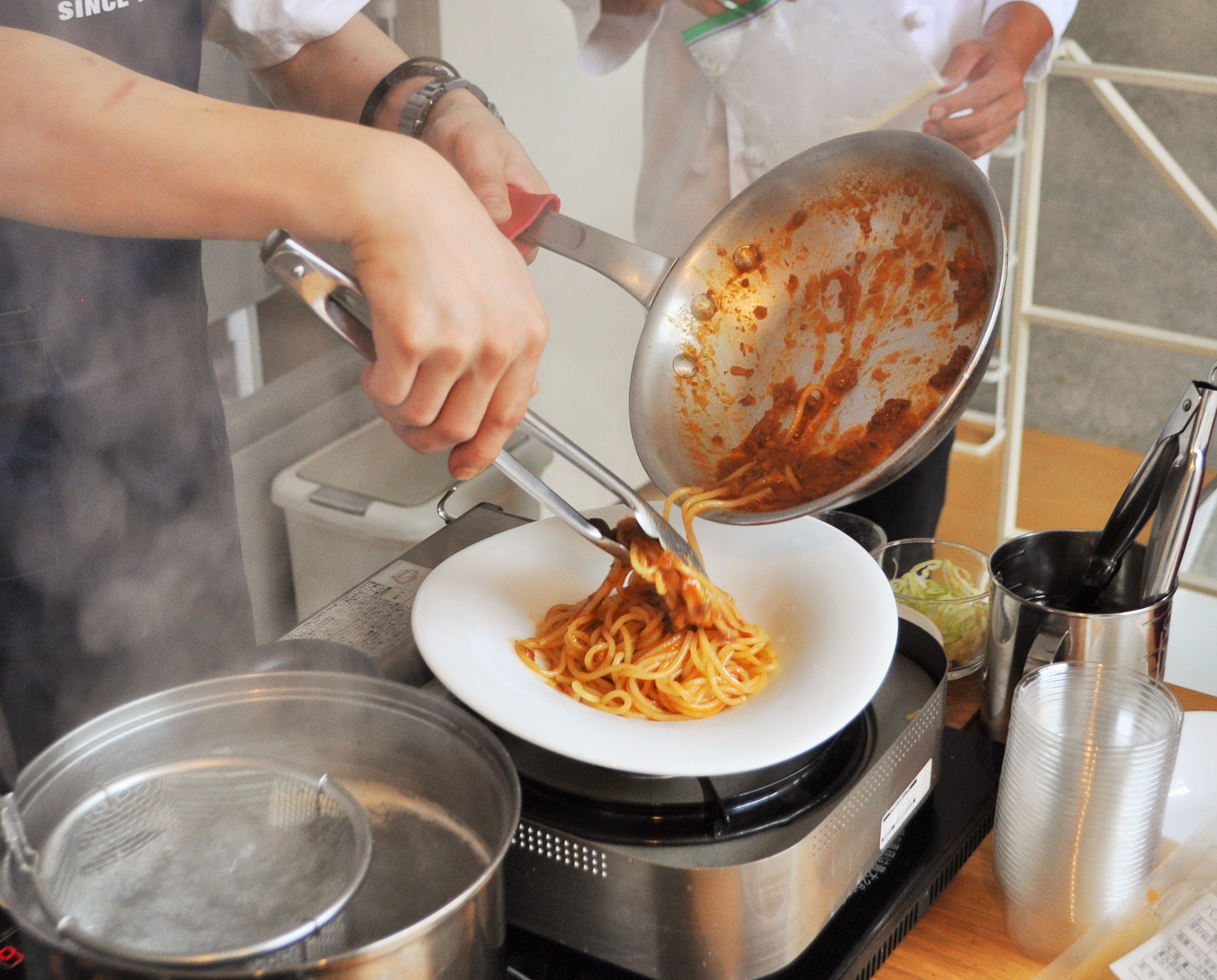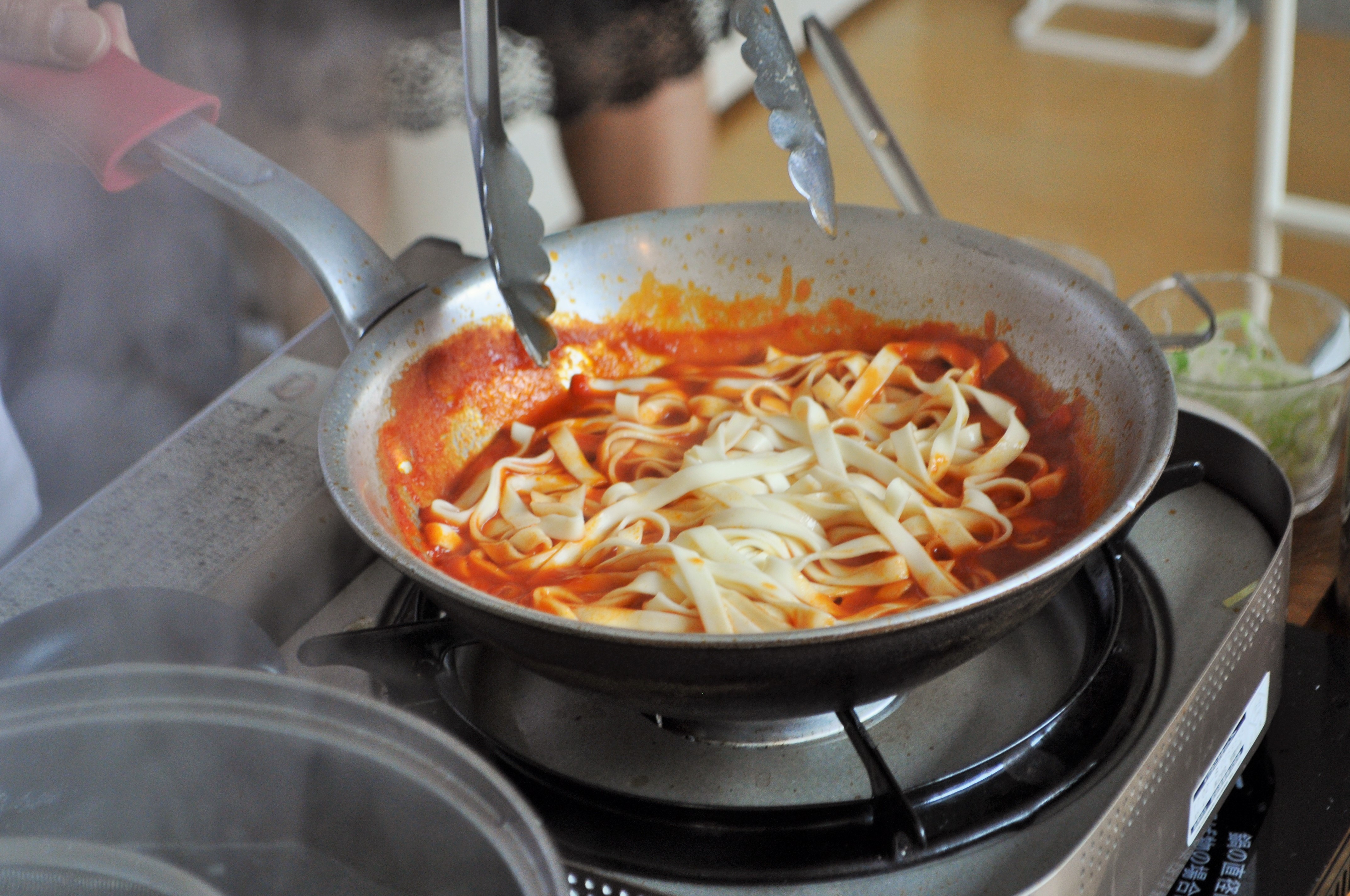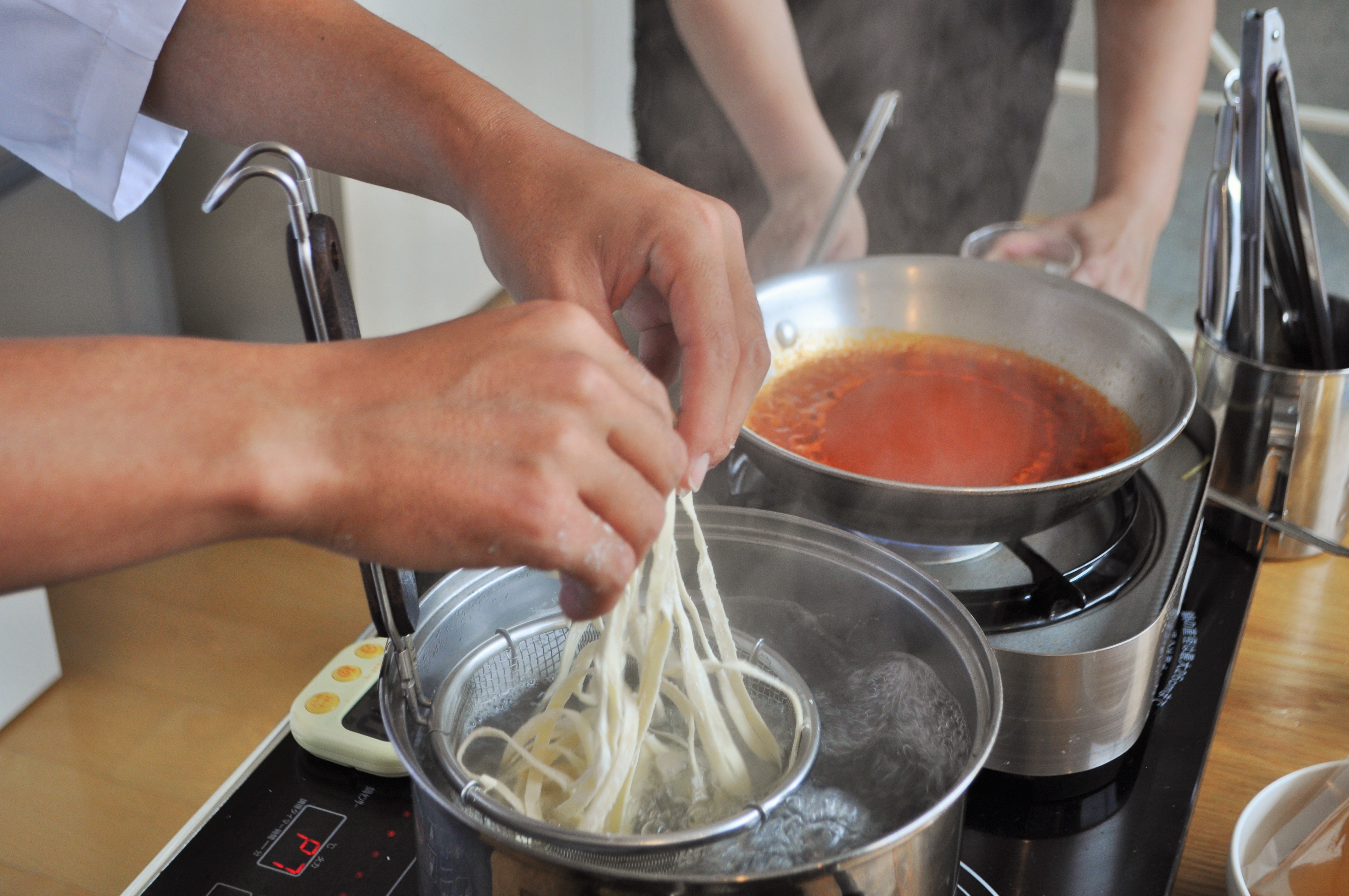 でも、初めて見る生パスタの調理に、いつのまにか熱視線。