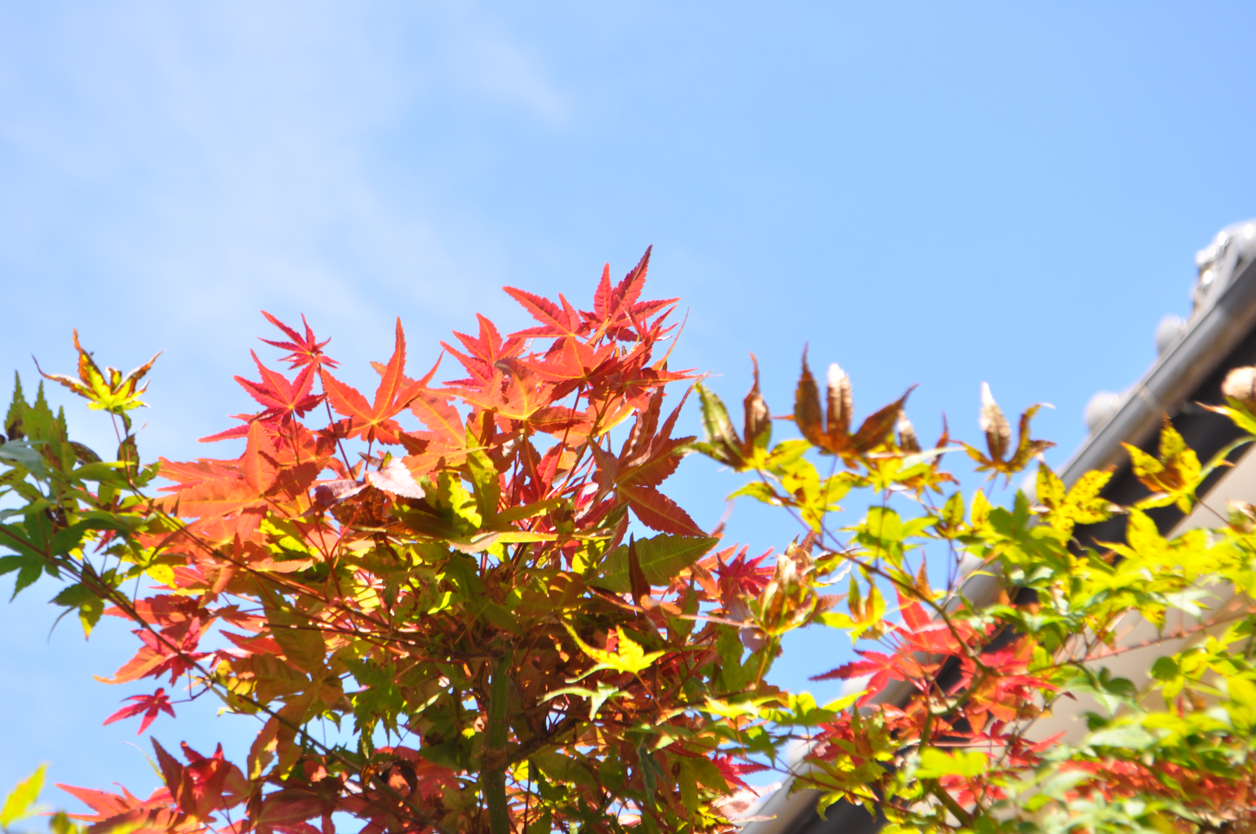 枯山水の庭の『イロハモミジ』。今年は虫の被害も少なく、上の方から紅葉が始まりました。