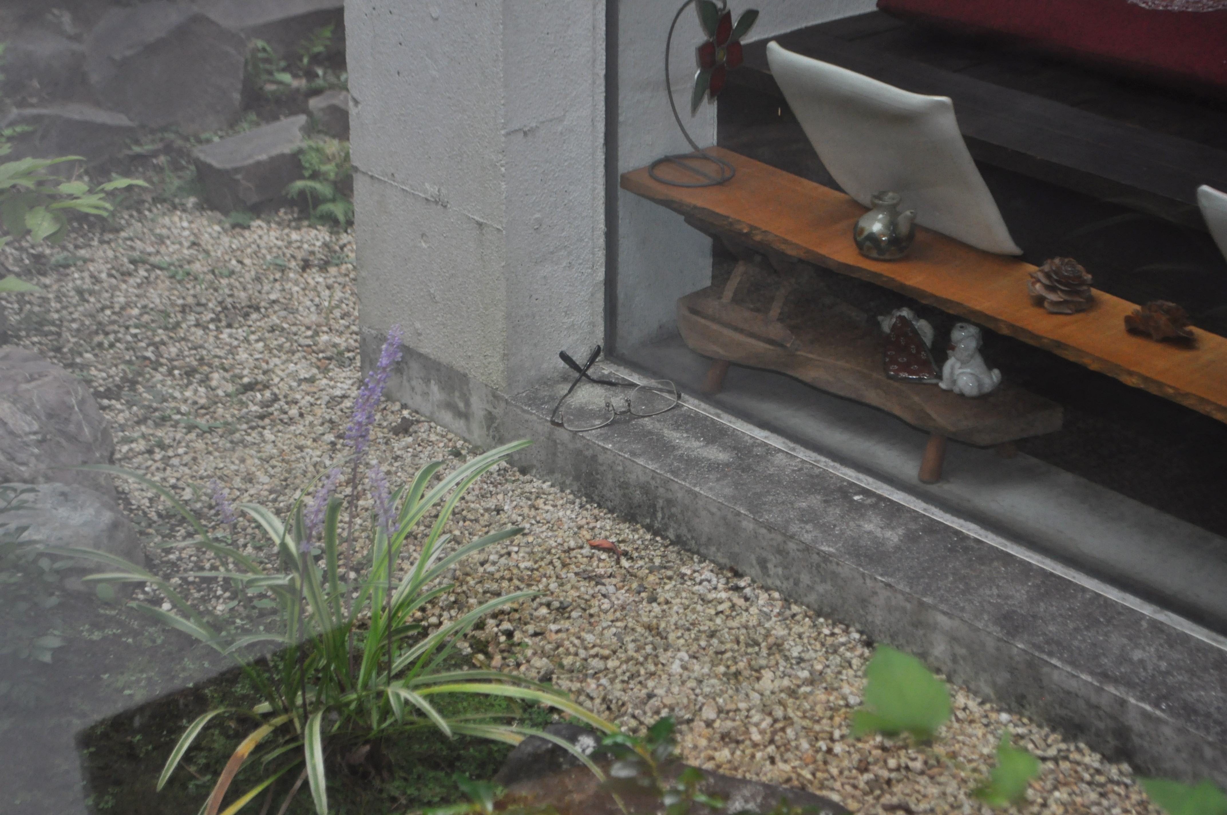 枯山水の庭に、ぽつんと取り残されたメガネを発見。