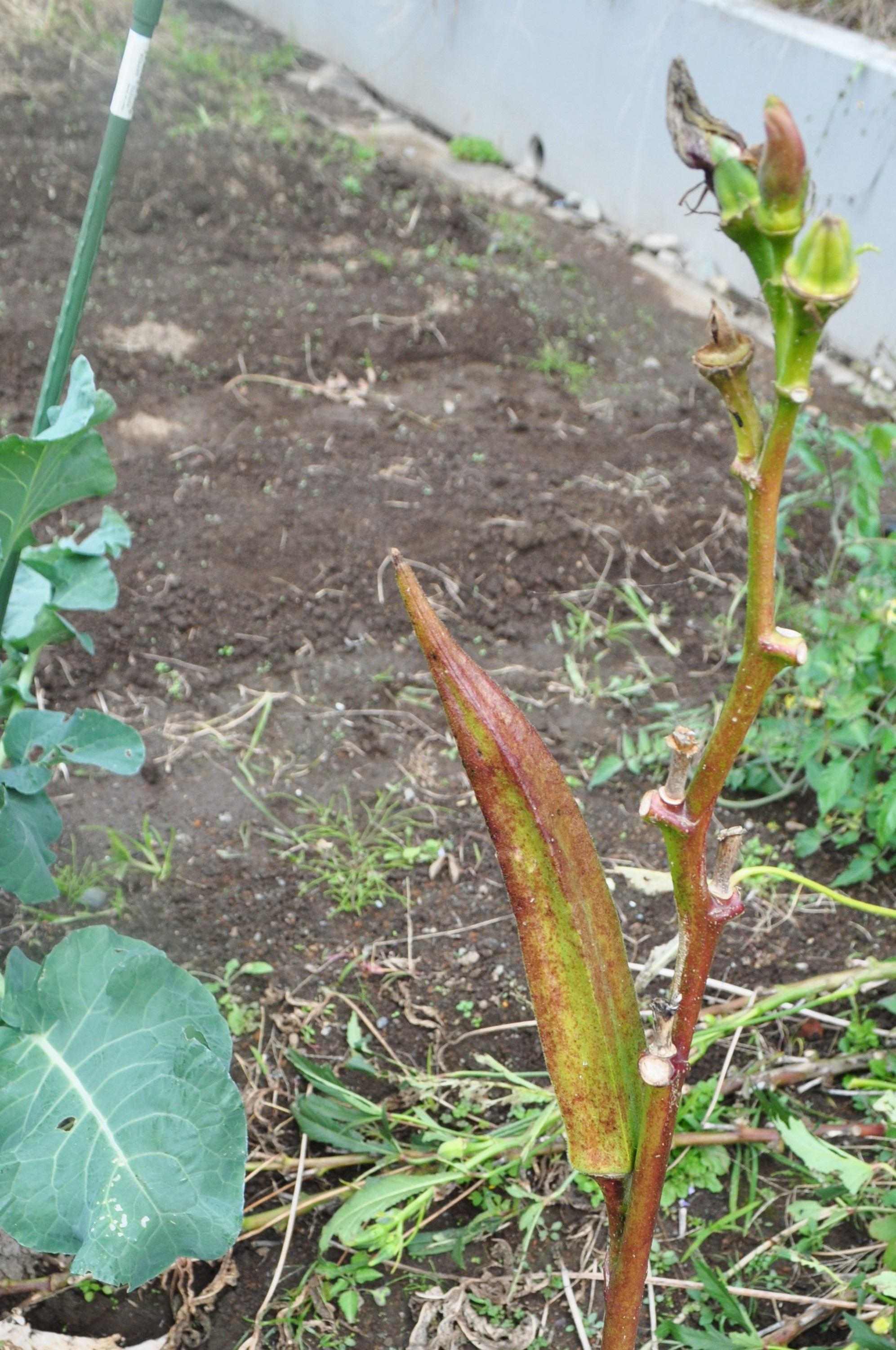 来年用にと、収穫せずにほったらかしにしておいた『オクラ』4本(個)。