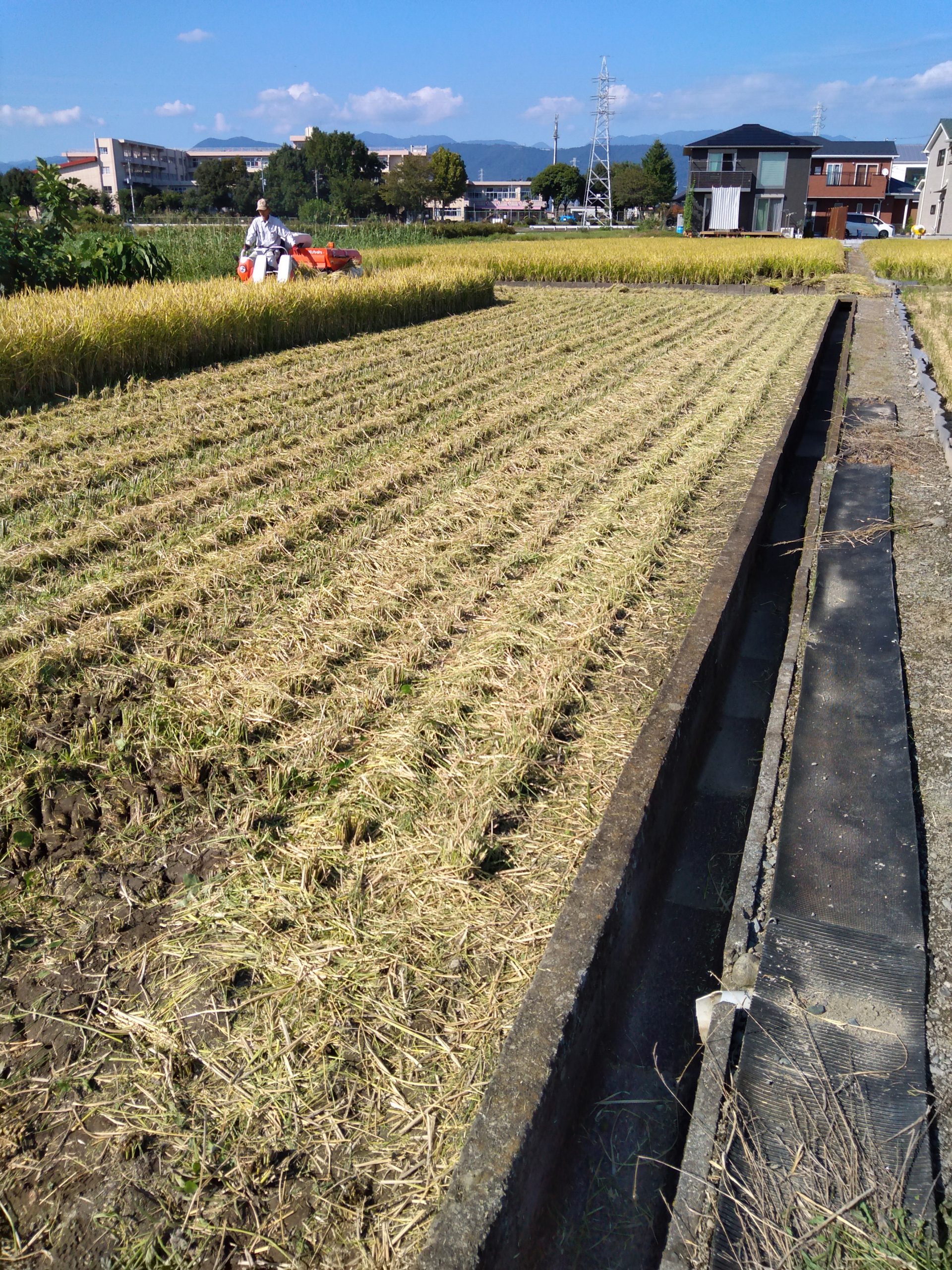きれいに刈り取られた田んぼを眺めて「充実感」が。