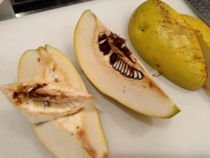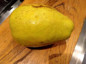 よく洗った容器に花梨1個分、もれなく詰め込む。