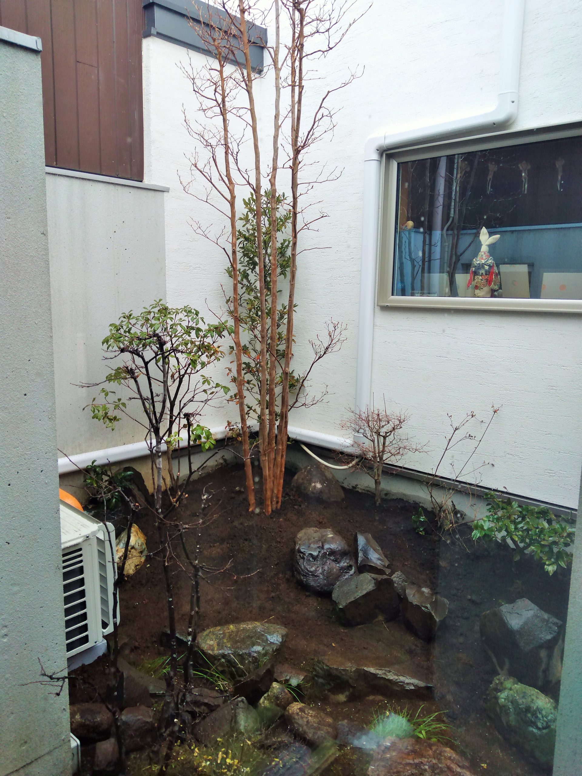 建物が完成した12月になっても植木職人さんの都合がつかず