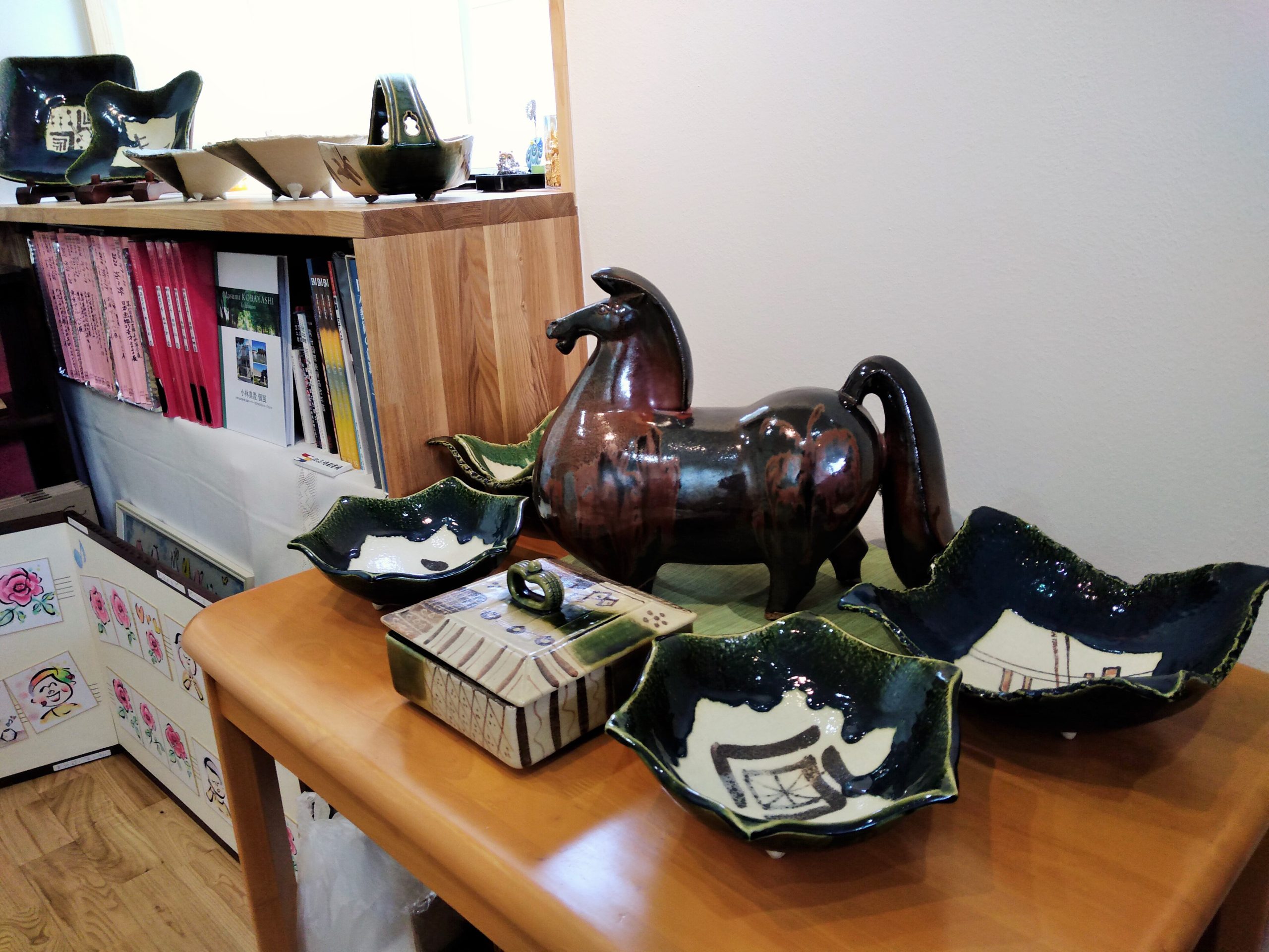 非売品の大きな作品もありますが、お買い求めできる小作品もいろいろ展示していただきました。