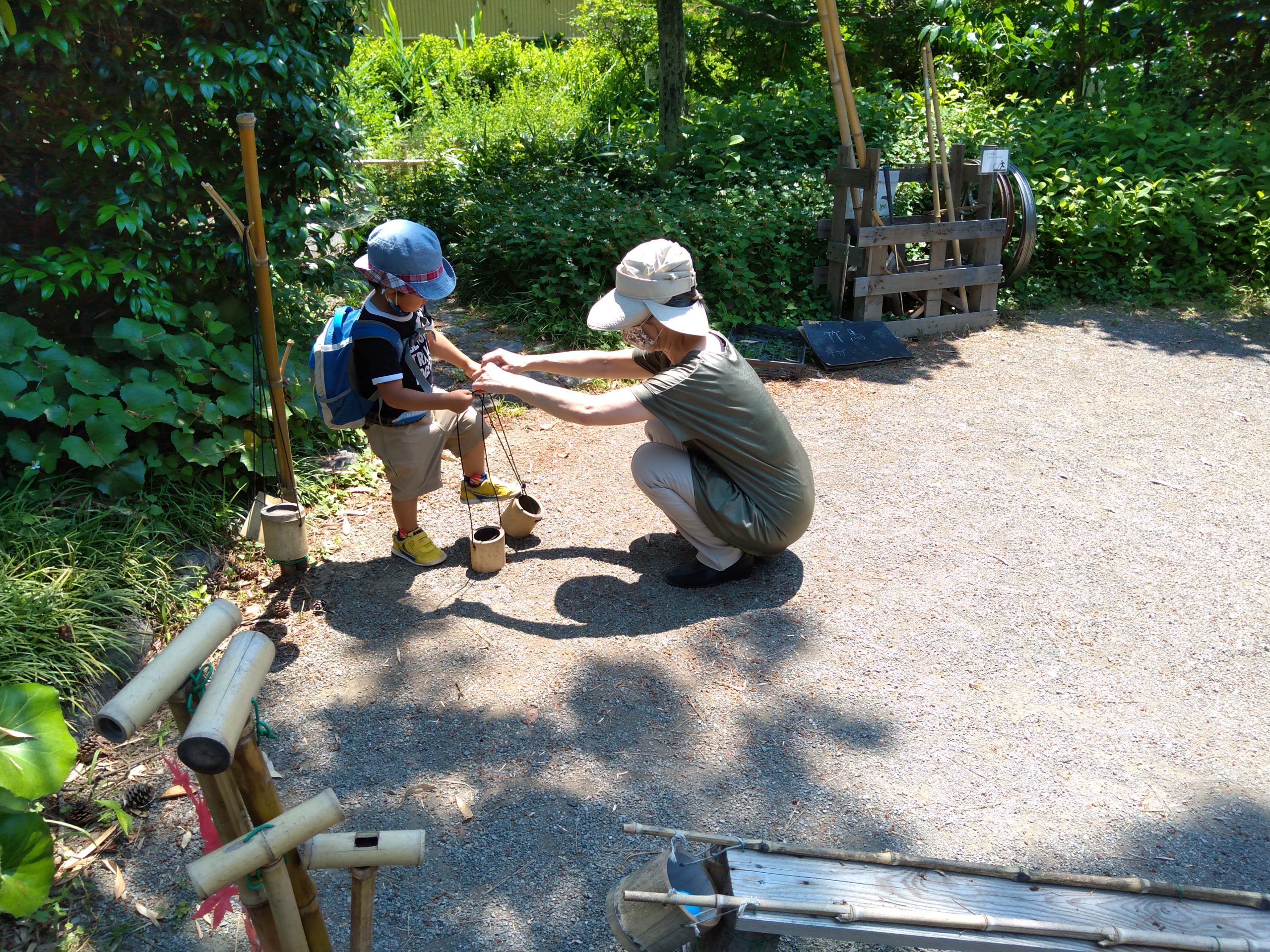中庭には、昔懐かしい『かん(竹)ぽっくり』