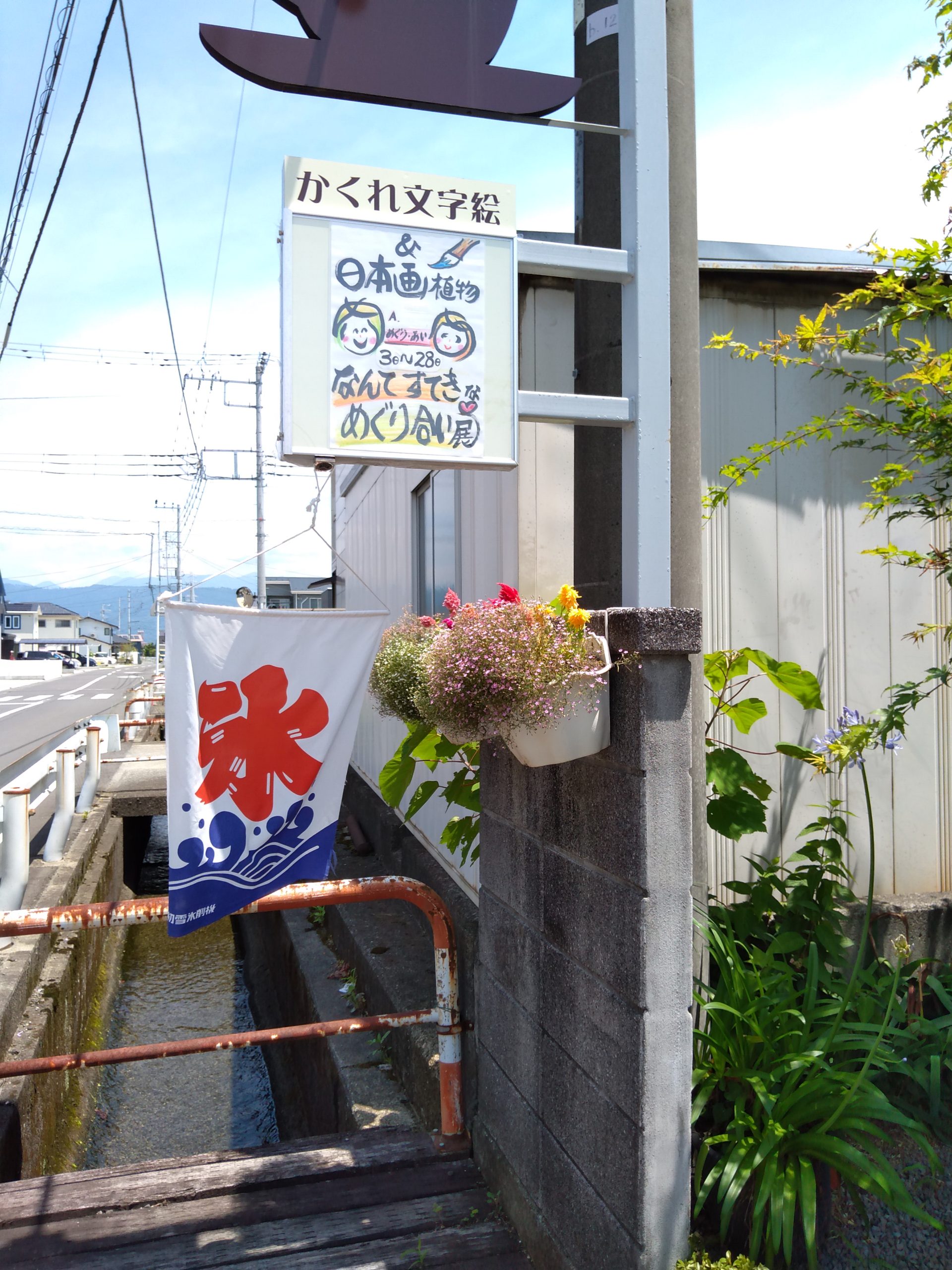『氷』の幟?、今年は、かくれ文字絵作家の看板下に設置。